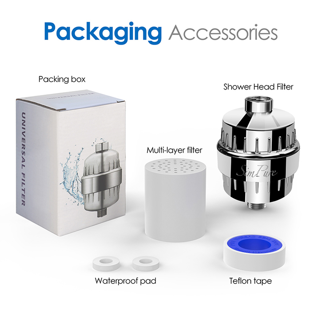 20-Stage Filtration: KDF 55, Alkaline Ceramic Balls, Activated carbon, Calcium Sulfite and other filtering materials ensures best effect of water quality purification. 20 Stages filter materials can effectively reduce chlorine, heavy metals, rust, sand and other sediments.