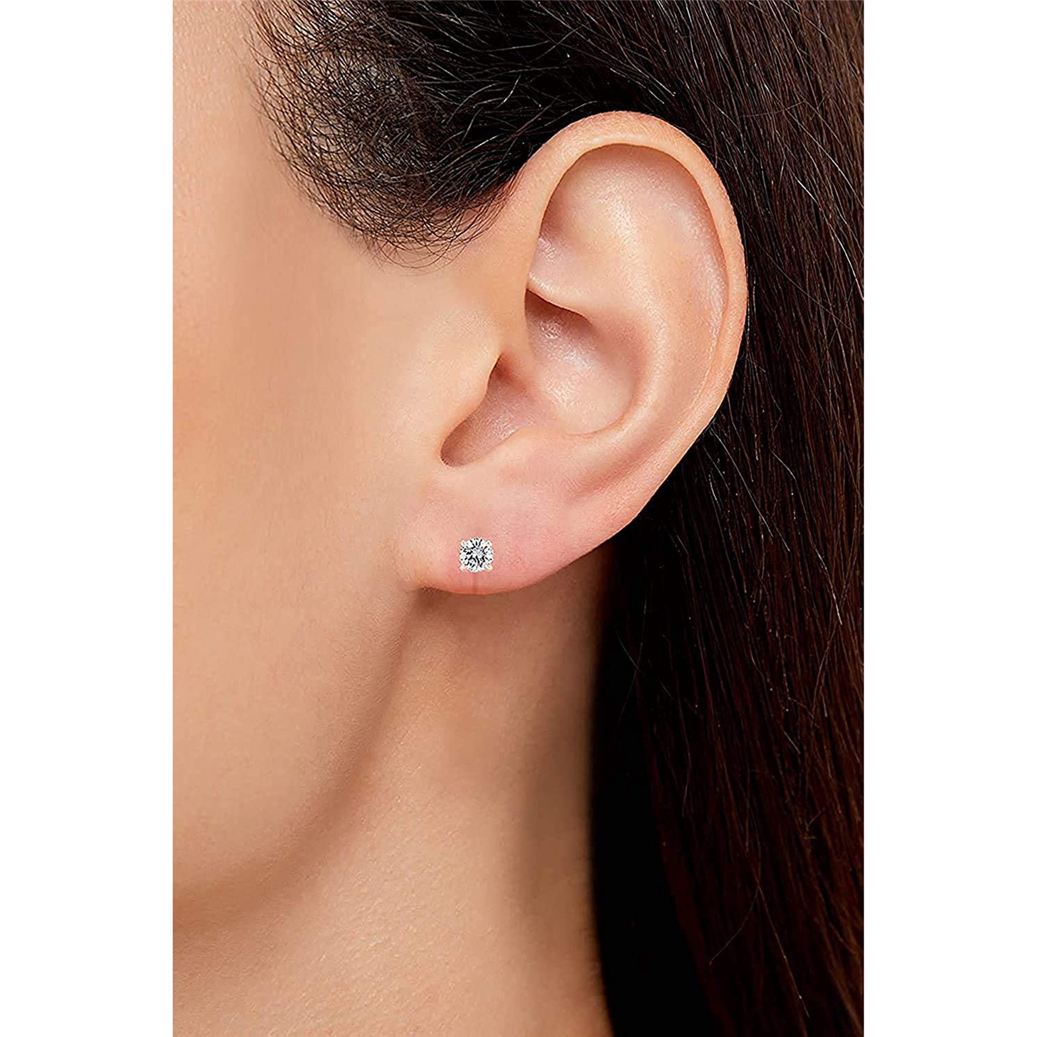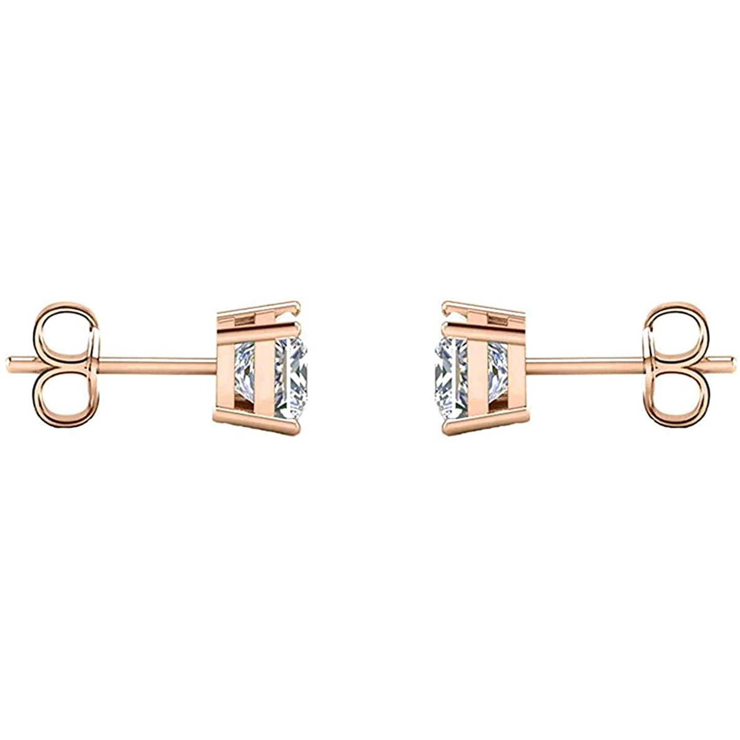 Savlano 1 Pair 4mm 14K Rose Gold Plated CZ Round Cut Stud Earrings