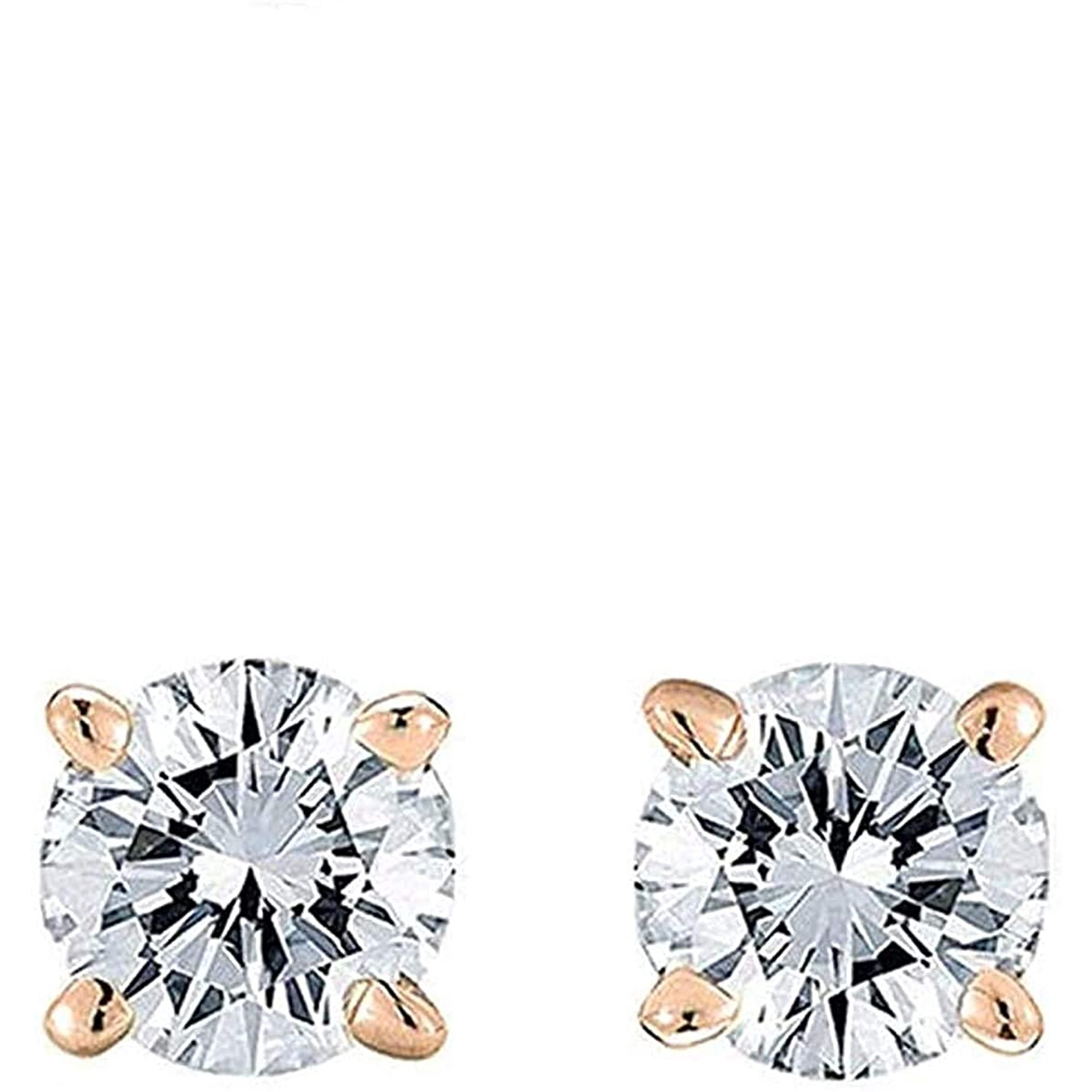 Savlano 1 Pair 8mm 14K Rose Gold Plated CZ Round Cut Stud Earrings
