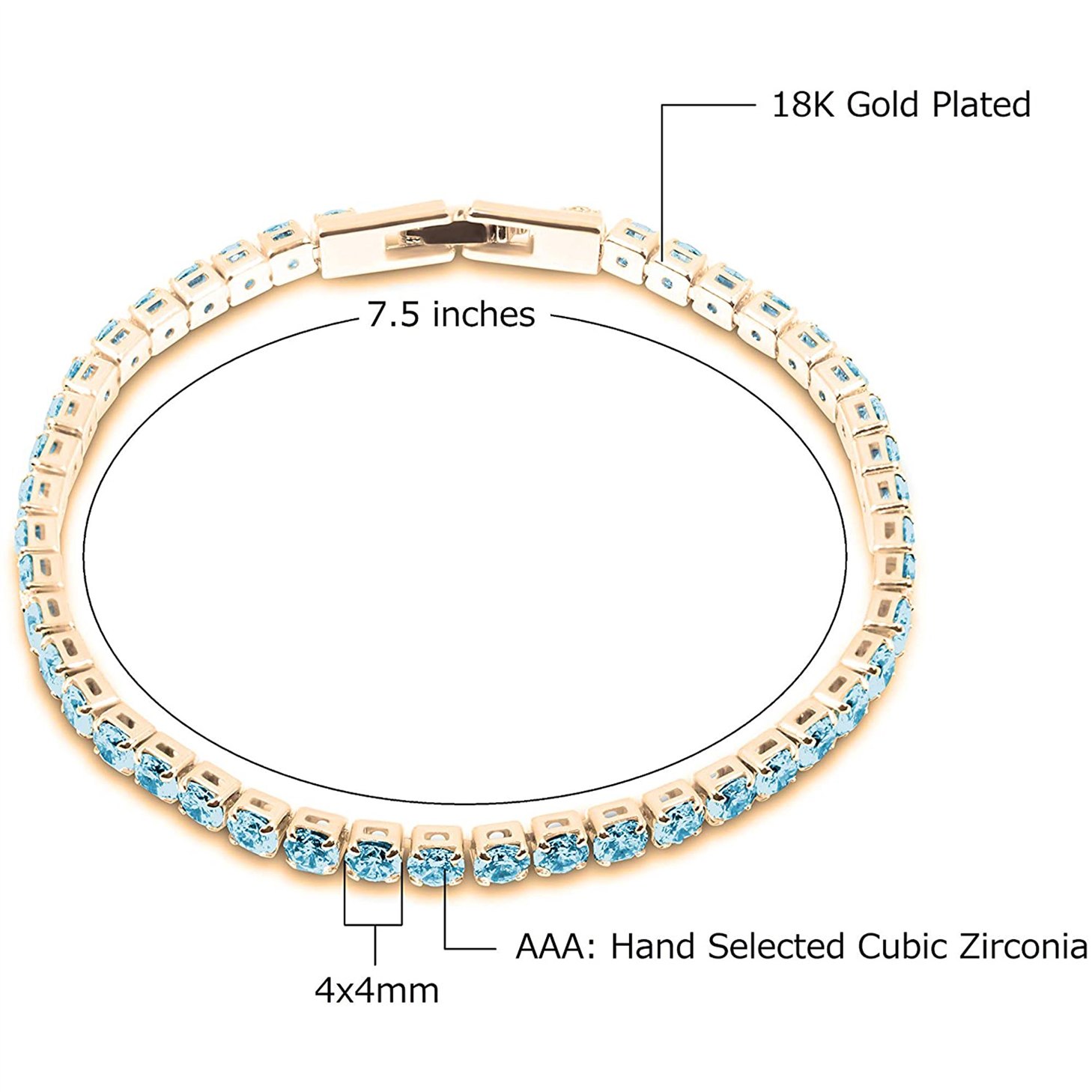 14K Yellow Gold Plated Light Blue CZ Round 4MM Classic Tennis Bracelet