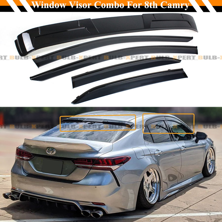FOR 18-24 TOYOTA CAMRY BLK TRIM WINDOW VISORS W/ CLIP + REAR WINDOW ROOF SPOILER