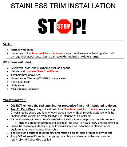 - Easy installation! Installs directly over your vehicles existing surface. Cut to perfection & Polished to a Mirror Shine.