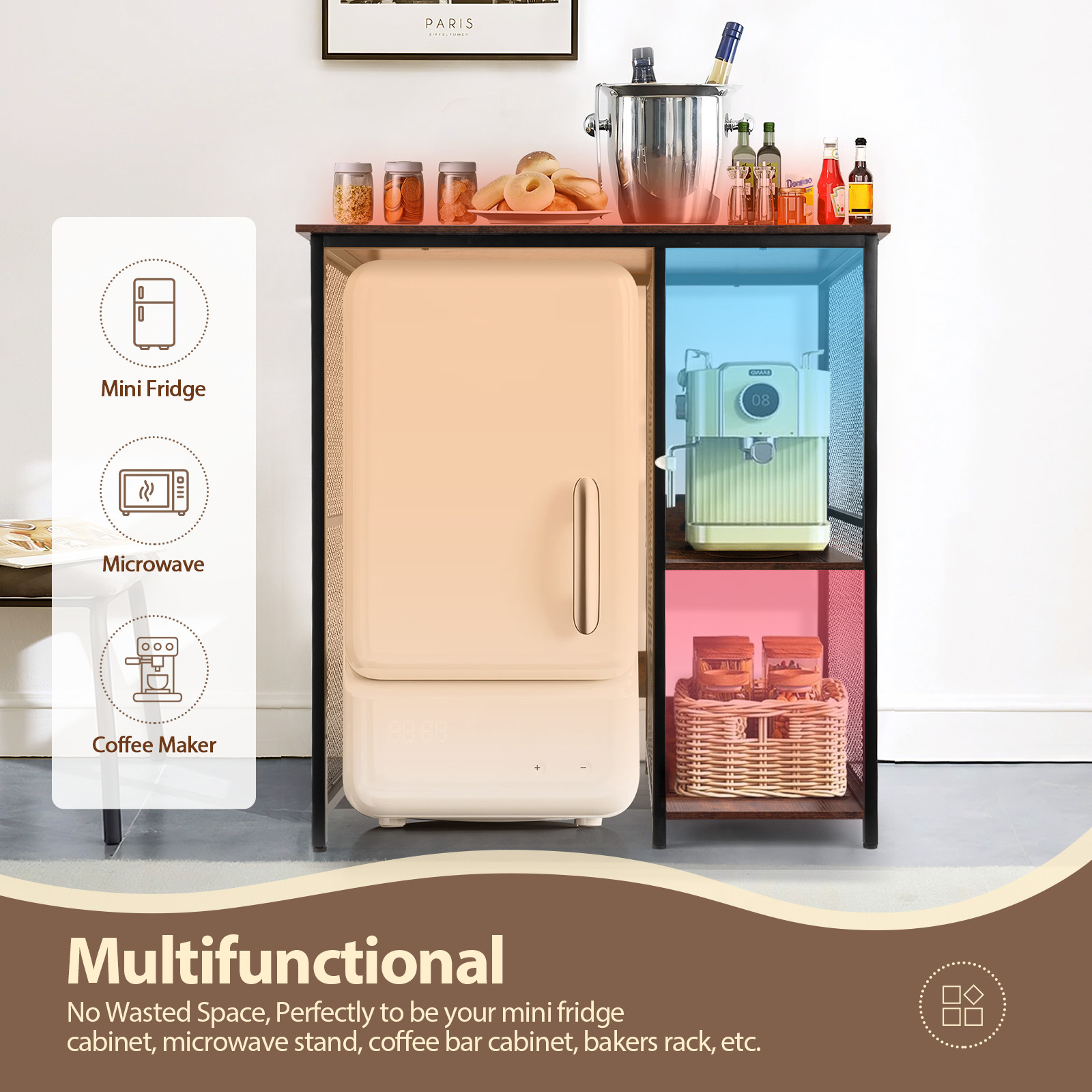 - Multifunctional: Keep your snacks, drinks, plates, mini fridge, microwave, coffee maker and more in one convenient spot. Perfectly to be your mini fridge cabinet, microwave stand, coffee bar cabinet, bakers rack, etc.