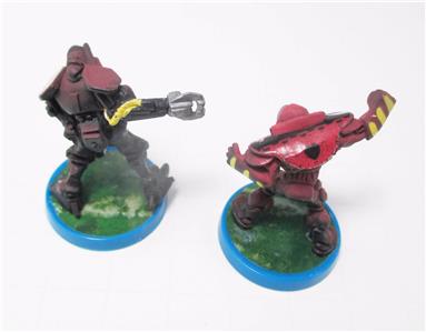 This is a pair of red linebackers players from the Battle Ball board game (2003) from Milton Bradley.
