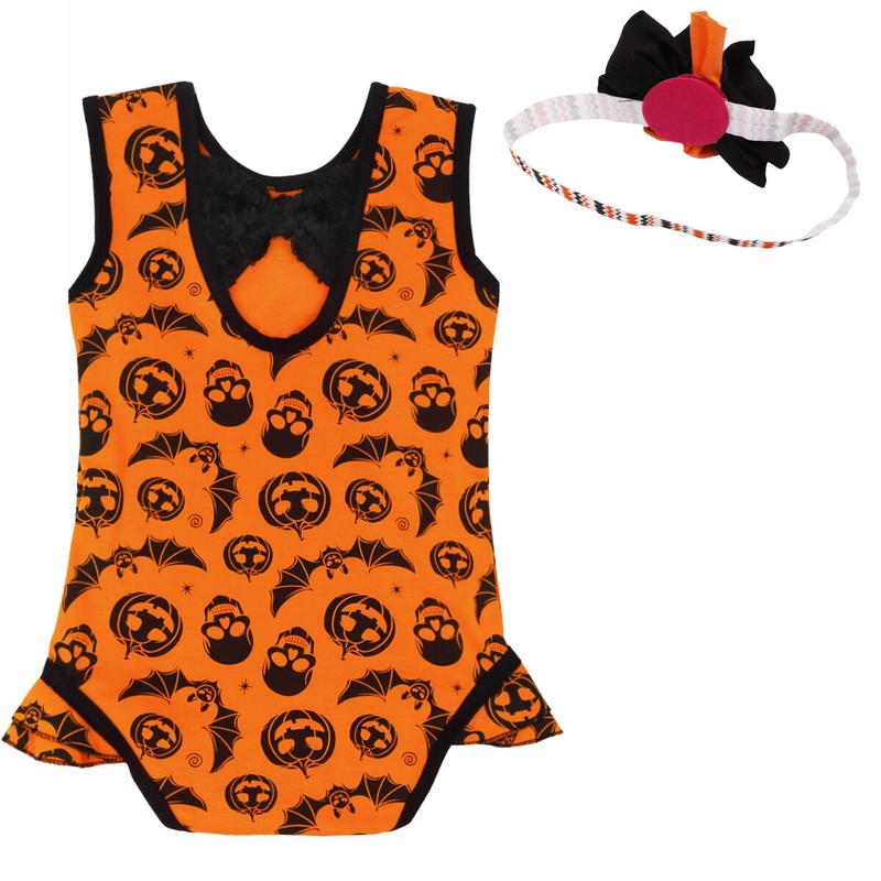 Lovely Baby Girl’s Halloween Romper with Headband, short sleeves.
