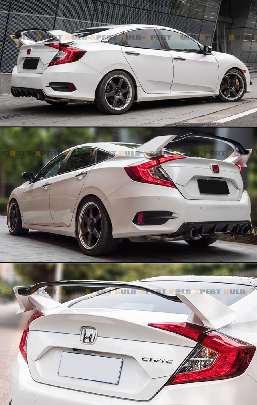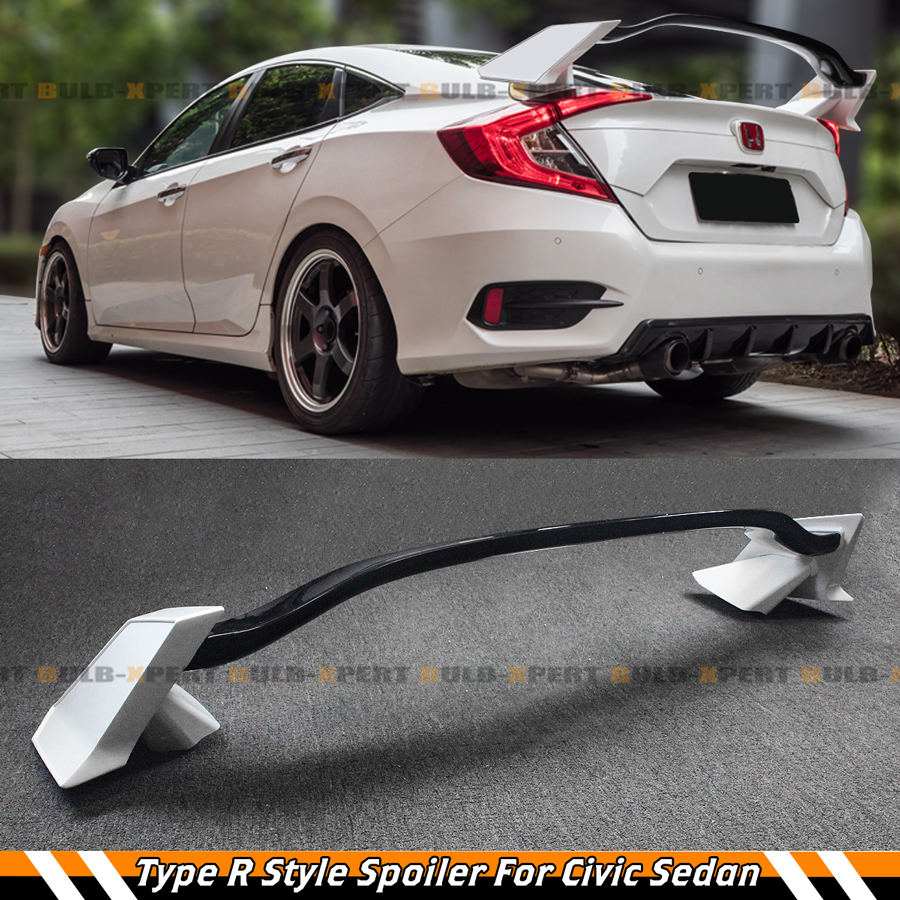 FOR 16-2021 HONDA CIVIC 4 DOOR SEDAN 2 TONE WHITE BLK TYPE R STYLE SPOILER WING