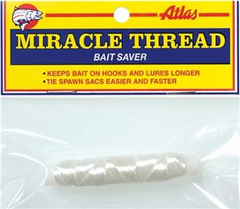 Miracle Thread makes wrapping bait on lures and plugs, quick and easy. Wrap Miracle Thread over bait to hold firmly in place, and then break off. That's all - no knotting required. Miracle Thread is thin, clear and strong, holding your bait in place without being noticed by fish.