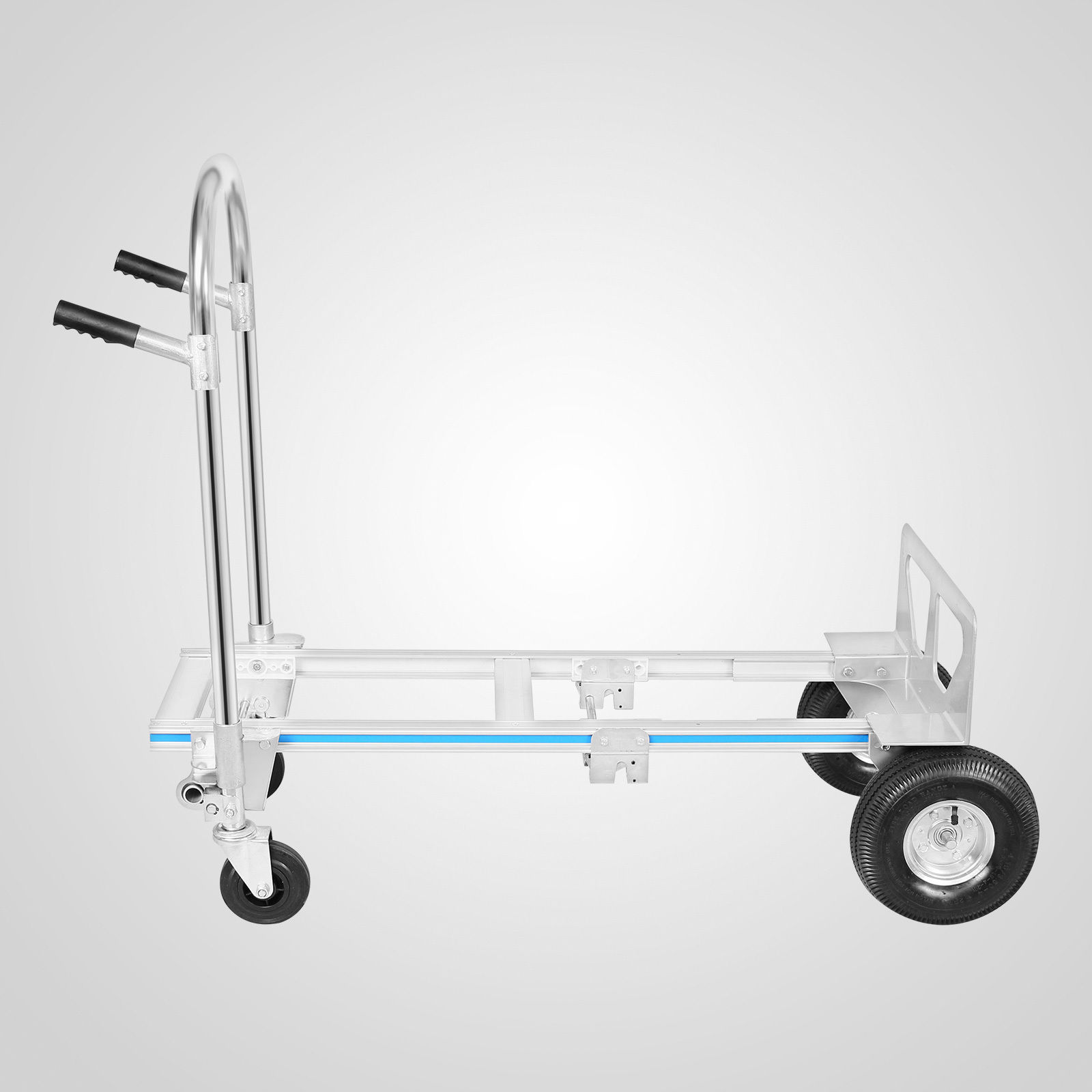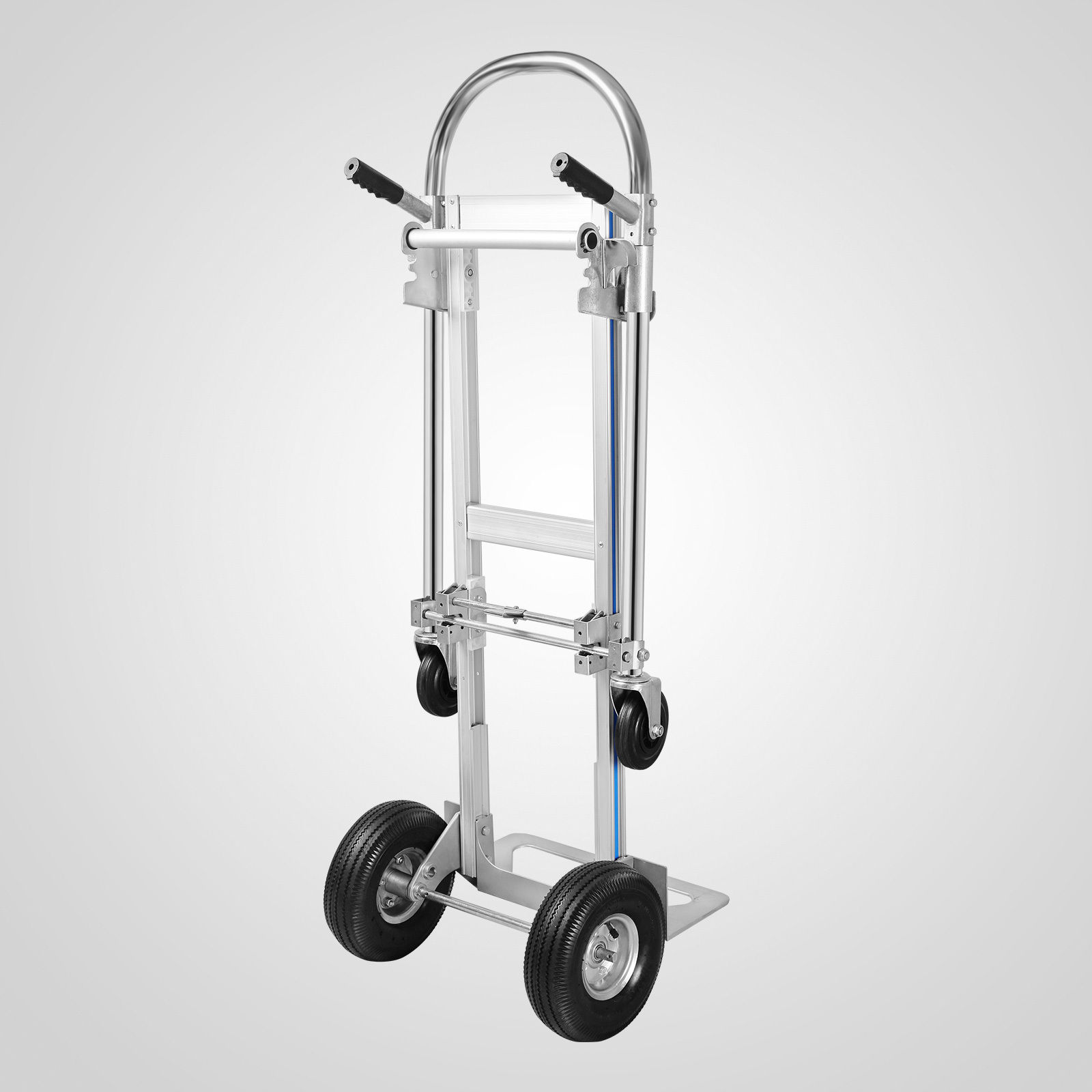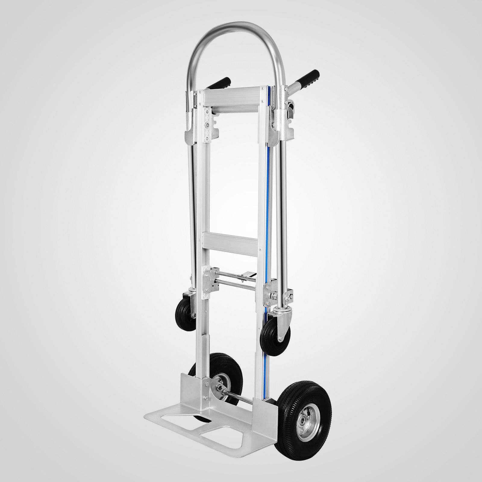 This is a 2 in 1 Aluminum Hand Truck. This aluminum hand truck easily folds from the hand truck position to the utility cart position. No tools needed to switch between positions. Just press a lever unlocking the two 13cm moveable wheels, and this is now a aluminum utility cart. This cart features a heavy duty load carrying capacity, and let this lightweight hand truck do all your heavy lifting. The ergonomic design makes it ideal for home or work. Easily converts to a 2-wheel upright, 4-wheel cart or assisted 4-wheel hand truck with just one hand no tools, no pins, no kidding.
