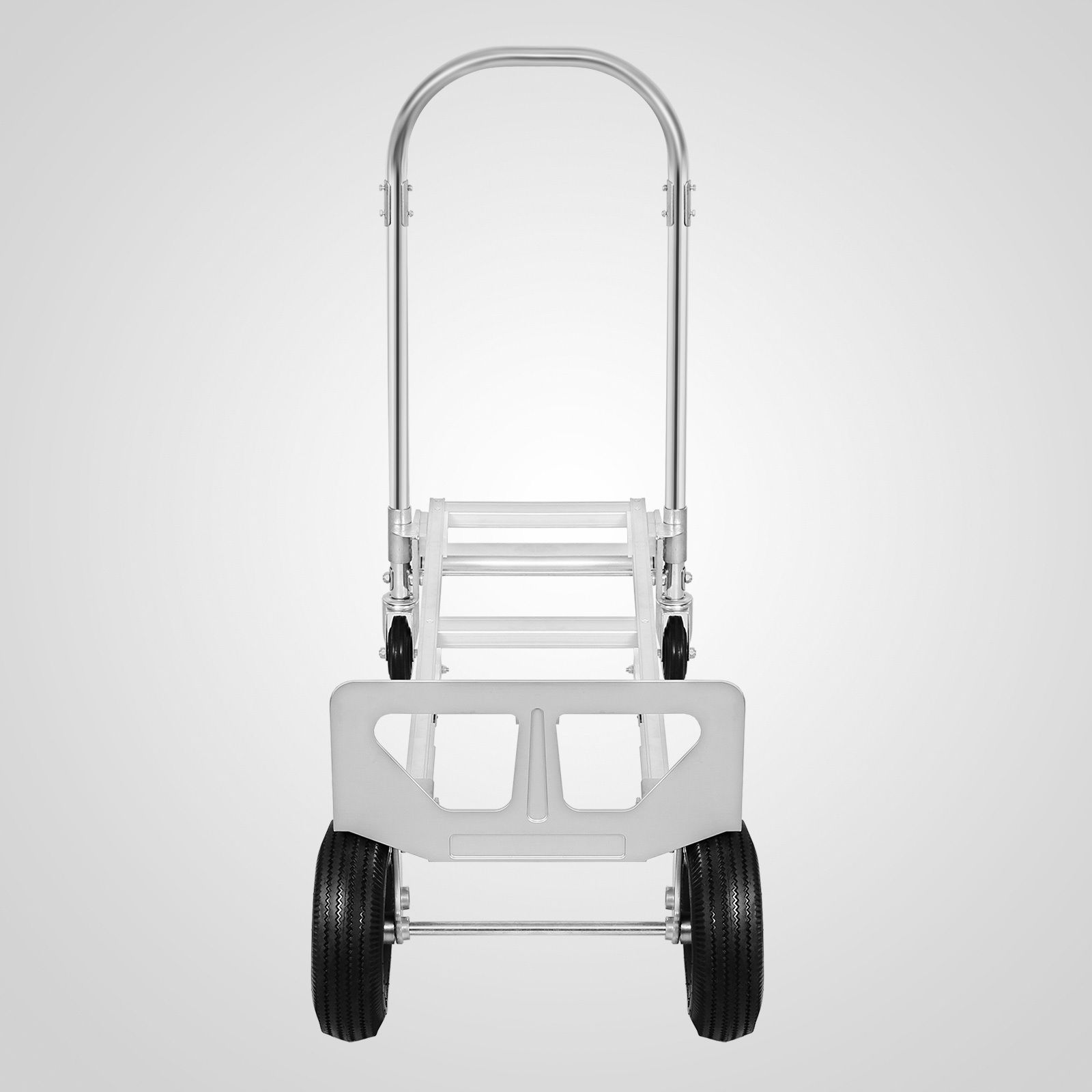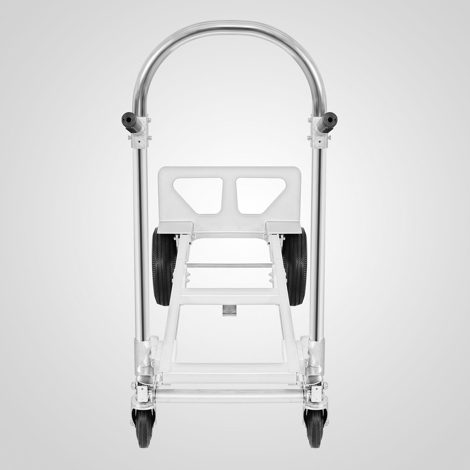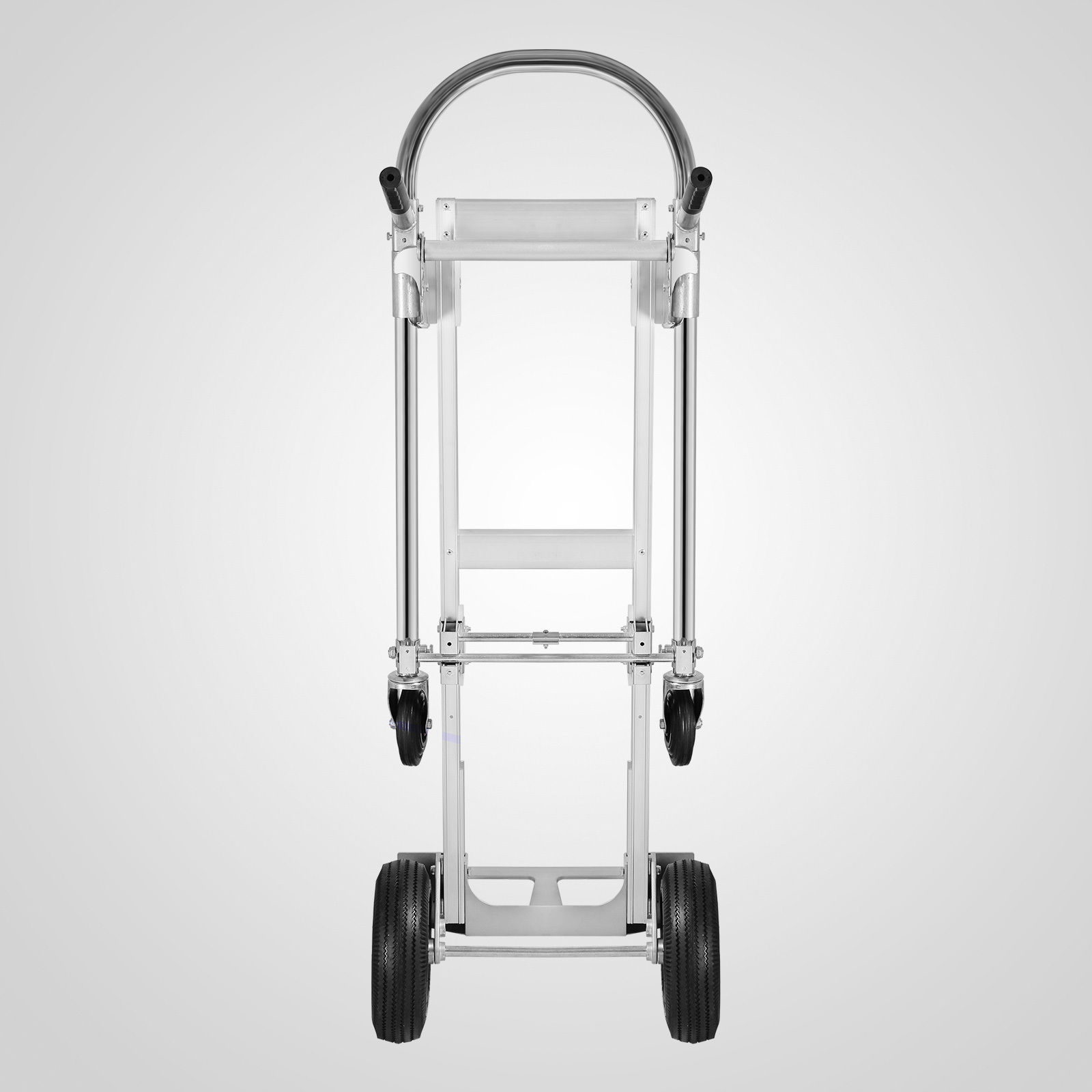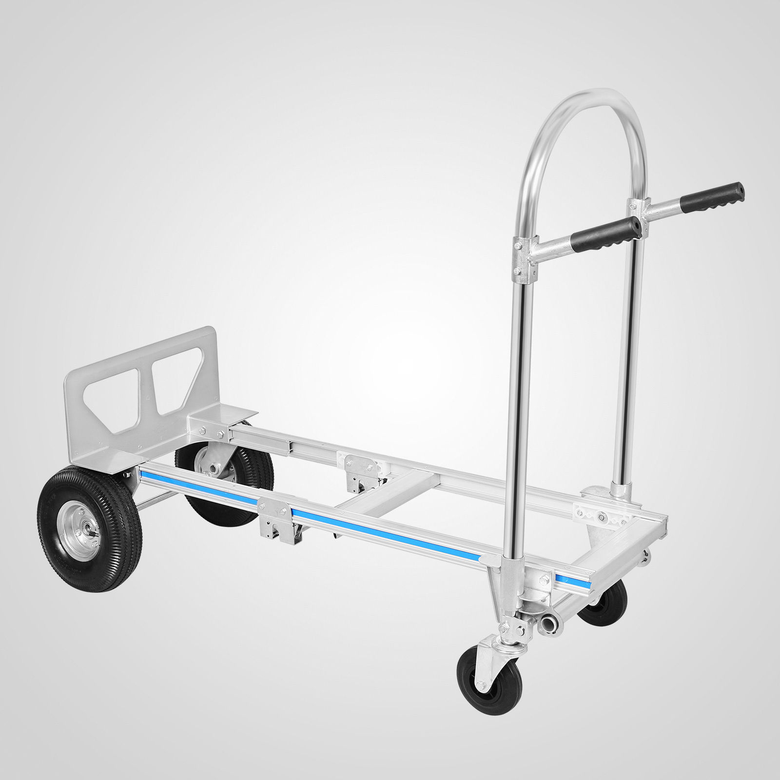 This is a 2 in 1 Aluminum Hand Truck. This aluminum hand truck easily folds from the hand truck position to the utility cart position. No tools needed to switch between positions. Just press a lever unlocking the two 13cm moveable wheels, and this is now a aluminum utility cart. This cart features a heavy duty load carrying capacity, and let this lightweight hand truck do all your heavy lifting. The ergonomic design makes it ideal for home or work. Easily converts to a 2-wheel upright, 4-wheel cart or assisted 4-wheel hand truck with just one hand no tools, no pins, no kidding.