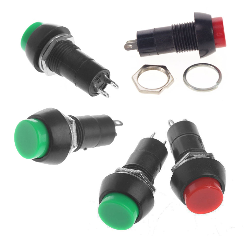 10Pcs PBS-11A AC 250V 3A Self Locking Push Button Switch 12mm Round Red/Green