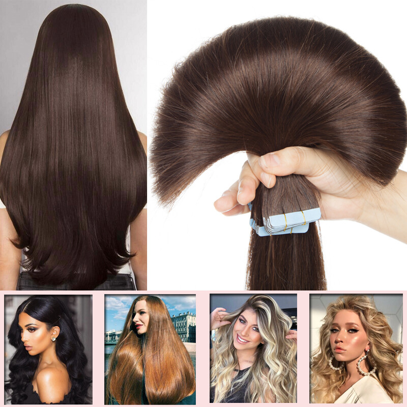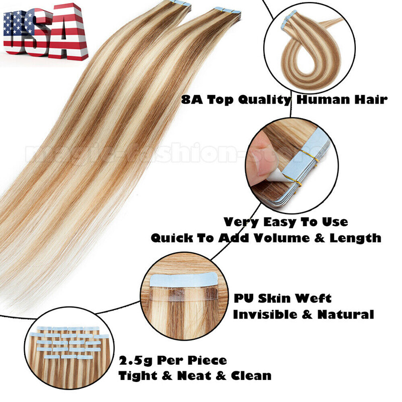 US HIGH QUALITY --- 100% Virgin Human Hair Remy Tape In Hair Extensions, Invisible Thick-Glue Seamless Fusion Skin Weft.