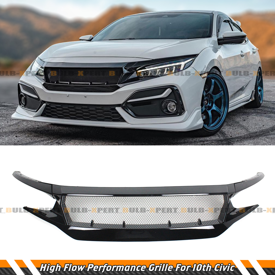 FOR 16-21 HONDA CIVIC 10TH GLOSSY BLACK HIGH FLOW PERFORMANCE FRONT GRILLE GRILL