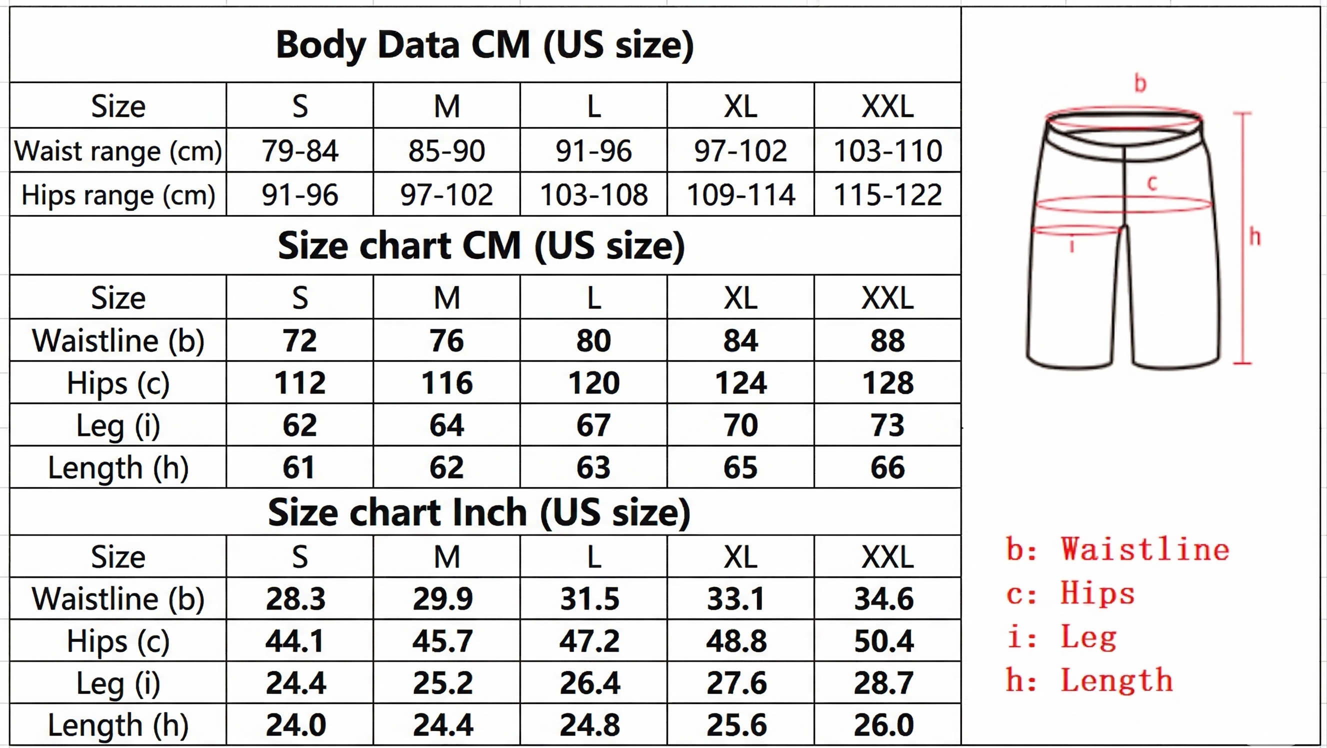 Size: S(EU)=Waist 24.8-32.7in / M(EU)=Waist 25.9-33.9in / L(EU)=Waist 28.7-36.6in / XL(EU)=Waist 31.5-39.4in (optional)
