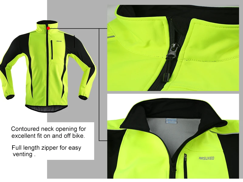 Contoured neck opening for excellent fit on and off bike. Full length zipper for easy venting.