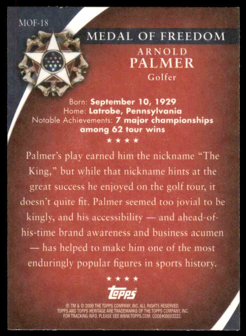 | 2009 Topps American Heroes MOF-18 Arnold Palmer | ||||||||||||||||||