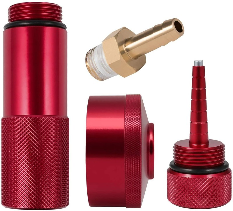 Material: Solid Billet Aluminum and Red Anodized Triple Combo Kit with Brass Hose Fitting