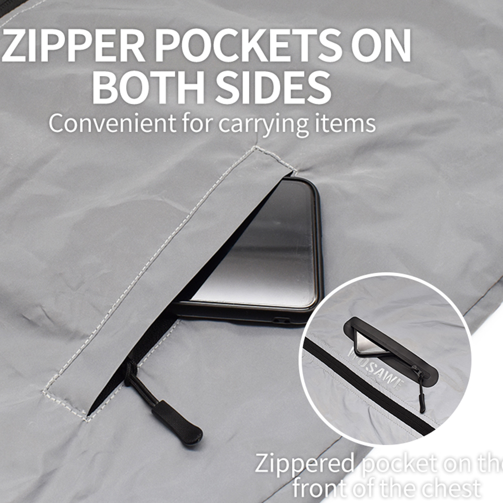 1 zip pocket on each side with drawcord for mobile phone and other items