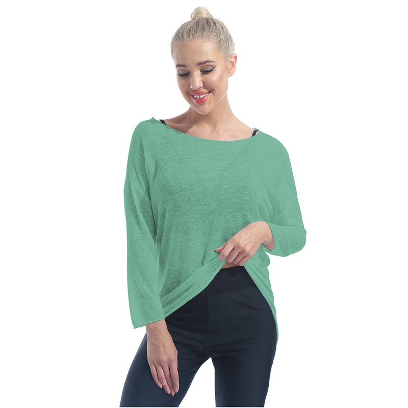 See-through tops, round neck, long sleeve, loose design, suitable for pair with leotard or dance dress.