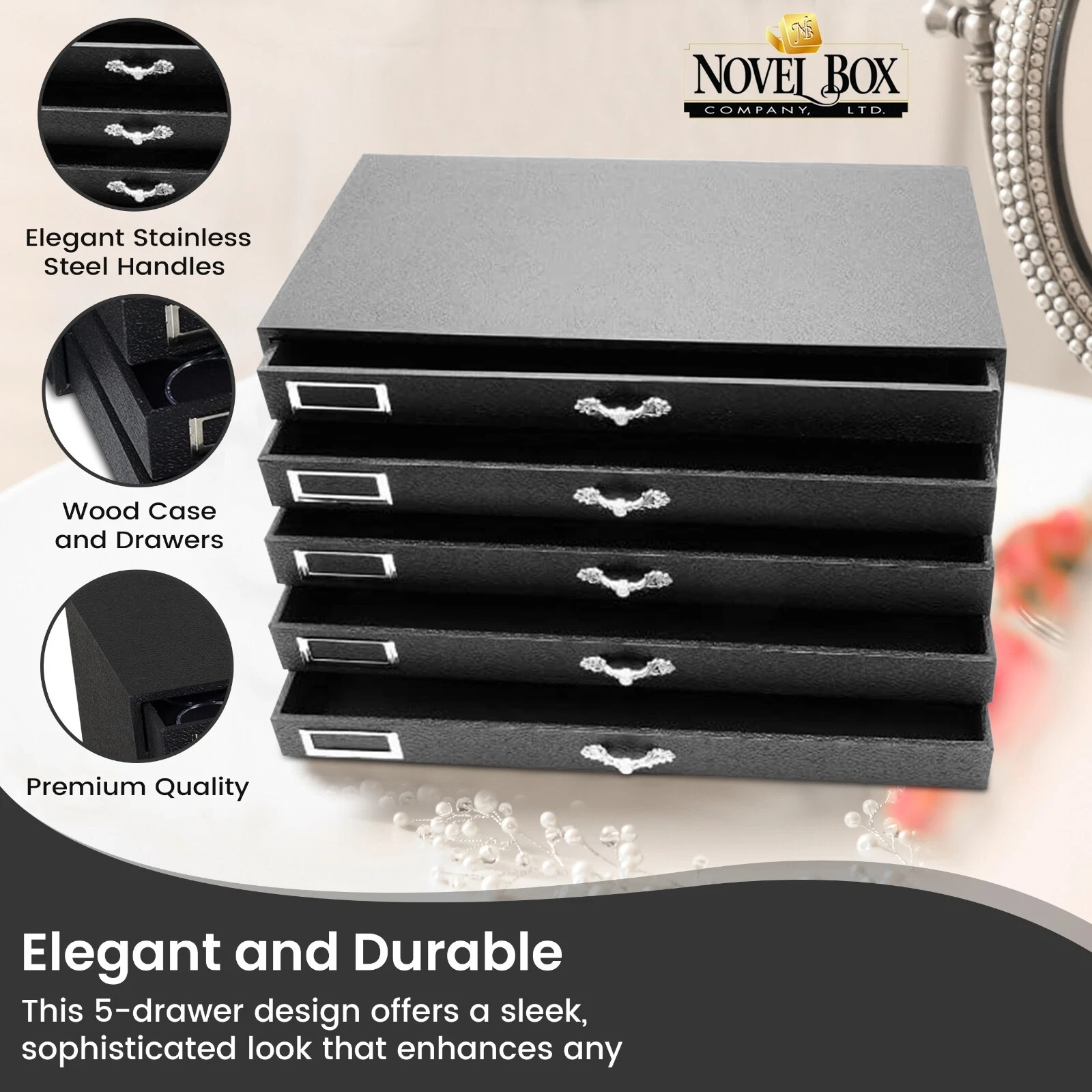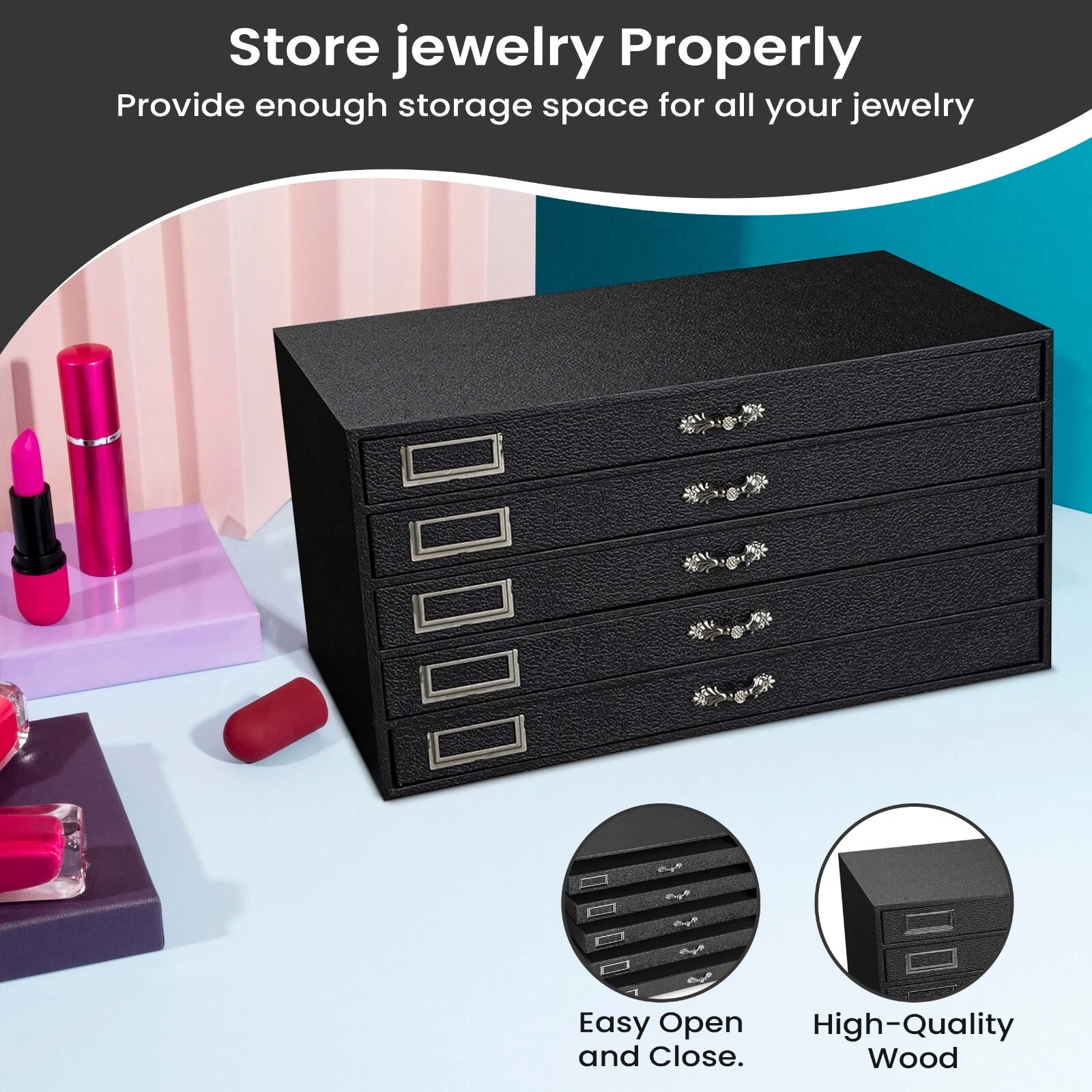 - Ideal for Jewelry Enthusiasts: This 5-drawer organizer offers a stylish way to keep your jewelry organized and accessible, enhancing any décor. It is made with durable construction also it's a must-have for any jewelry lover.