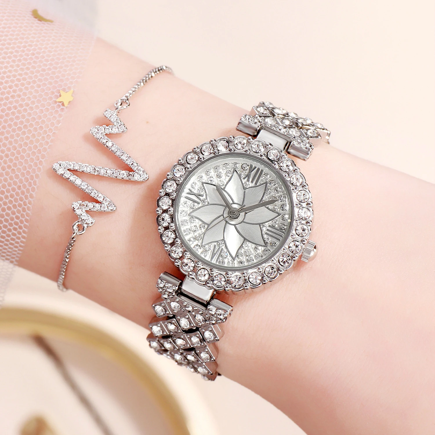 Women's Luxury Stainless Steel Quartz Watch Shiny Design Women's Dress Bracelet Watch Specification: Movement: Quartz Style: Fashion & Casual Band Material:Stainless Steel Gender: Women Materials:Alloy Dial diameter:about 4cm Band Width:about 2cm Band Length:about 23cm This is the best gift for your friends, colleagues, and loved ones Package included: Specification: -1 x Wrist watch -1 X Bracelet