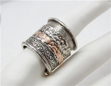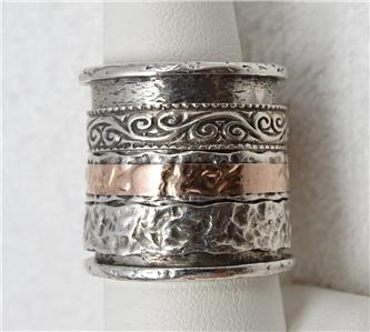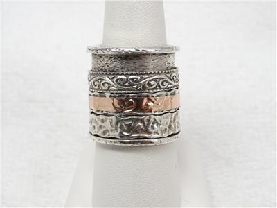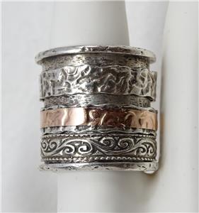 Silpada sterling silver & 14k rose gold triple band spinnger ring in excellent condition.