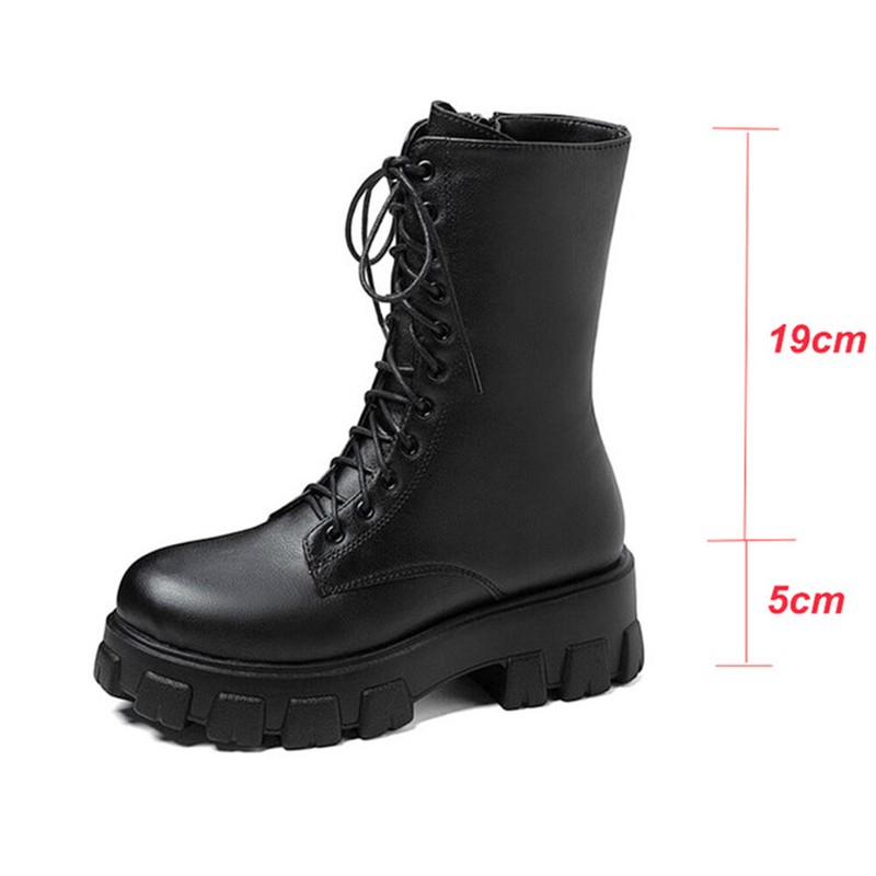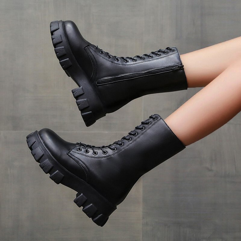 Womens Lace Up Ankle Boots Chunky Heels Military Combat Round Toe Platform Shoes