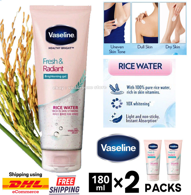 In hot & humid climates, no one wants to feel uncomfortable using a sticky, thick lotion, no matter how great the skin benefits of fairness and moisture. Vaseline Healthy Bright Fresh & Radiant Rice Water • The Lightest Gel ever for more hydrated, radiant and youthful skin • Formulated with 100% pure rice water, rich in skin vitamins to brighten and energize • Comes in gel format for light & non-greasy sensorial, instant absorption • 10x Whitening • Contains micro-droplets of Vaseline Repairing Jelly to restore moisture • Visibly fairer skin in 2 weeks • Suitable for all skin types. Ideal everyday fairness gel even in hot and humid climates SHIPPING COST INCLUDES: - bubble wrap - tracking number - Estimated 15-35 business days via Standard Small Package AIRMAIL Please View All Photos Listing Don't forget check out other great items in my ebay store: victoryonestore Please contact us if you require any information. "What You See Is What You Get" Thank You For Your Support |