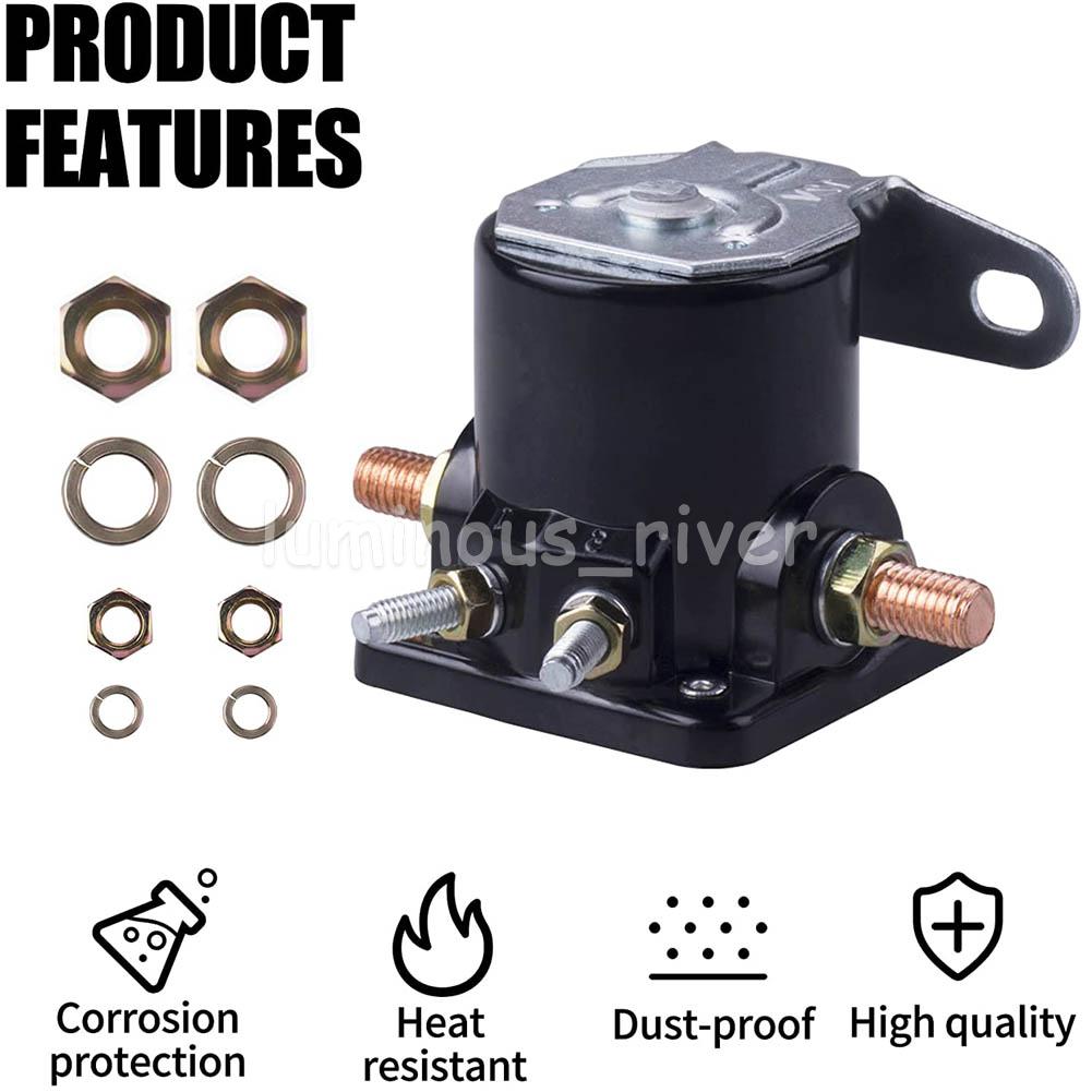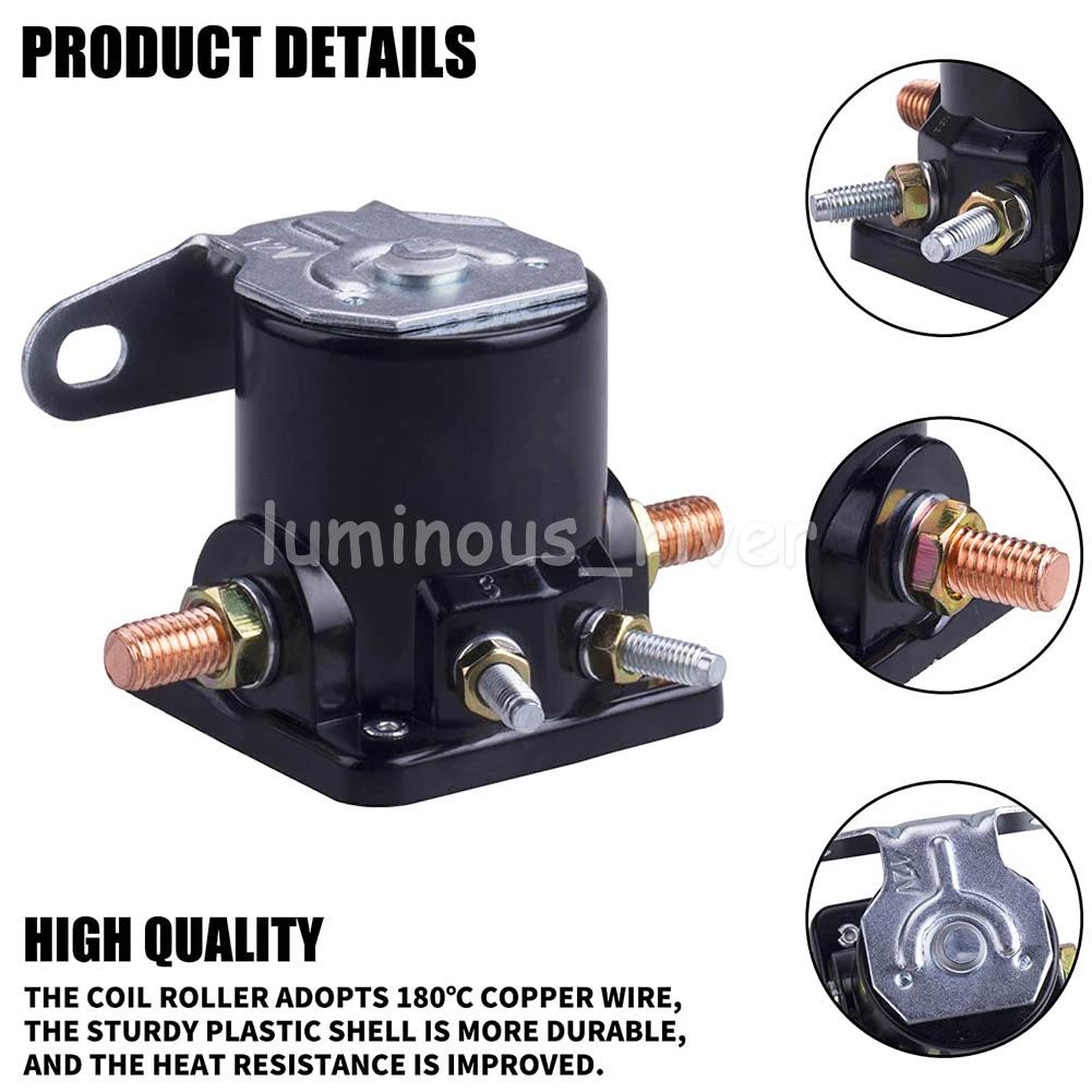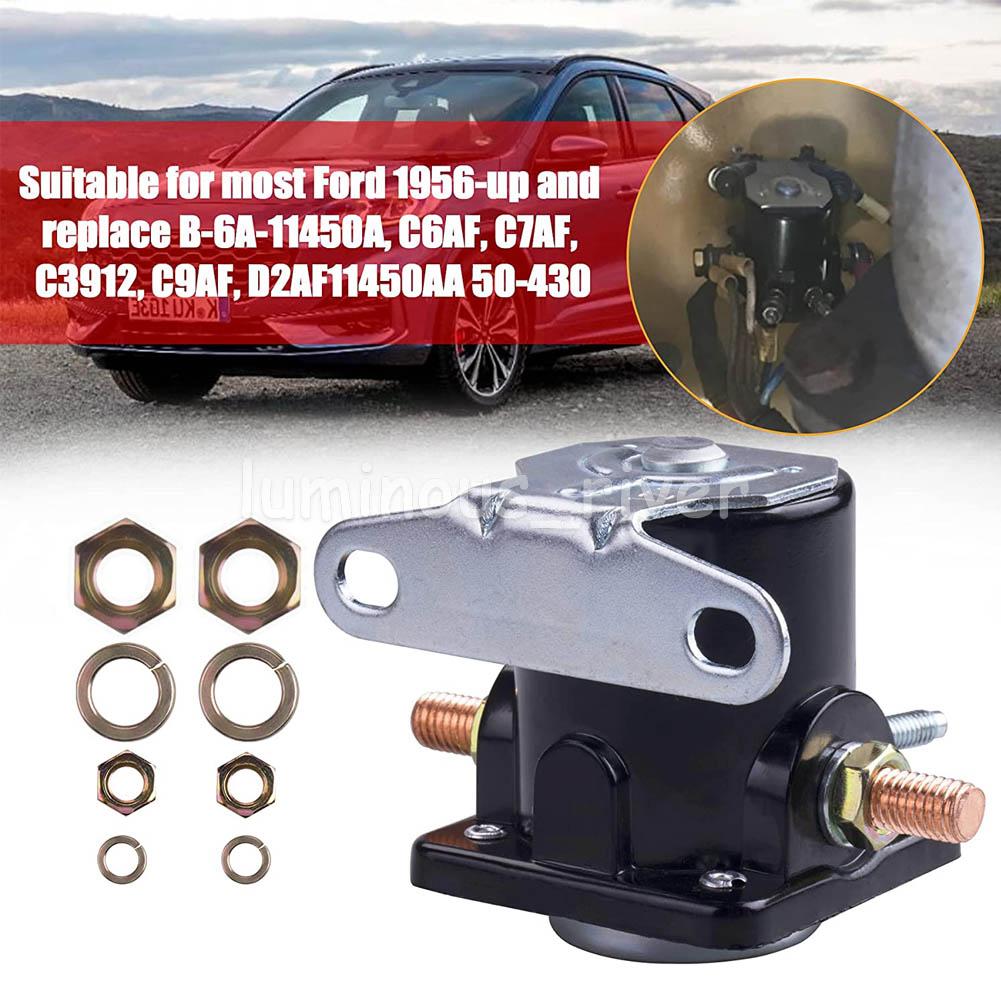 100% Brand new and high quality Item specifics Dimensions: H 50 x D 50 x W 50 mm Material: Metal Contacts: Copper Coil Rating: 650A make, 100A break Coil Resistance: 17.5Ohm, 4 Studs Amperage: 100A Body Material: Plated Steel Housing Earth: Insulated Voltage: 12V Product Description Color:black Dimension: Check the size on the pictures, if need to know more, contact us freely Material: Metal Voltage: 12V Number of Terminals: 4 Condition: 100% Brand new and high quality. Fitment: 1965-up Ford Replaces: B-6A-11450A,C6AF,C7AF and C9AF OEM # B-6A-11450A Package Included: 1x Solenoid Relay Switch