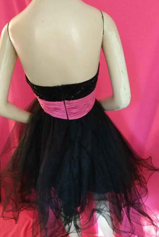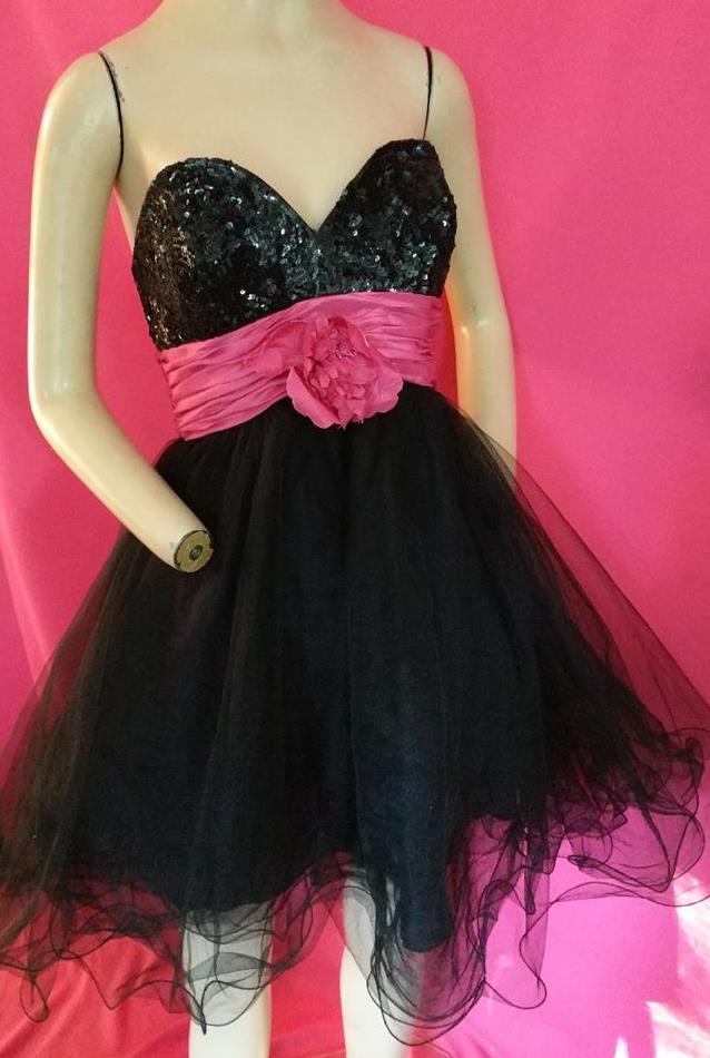 THIS PRETTY DRESS HAS FRONT STAYS FOR ADDED SUPPORT, A SEQUIN BODICE, IS FULLY LINED, HAS THREE LAYERS OF TULLE, AND A PINK WAISTBAND WITH FABRIC FLOWER. IT HAS A BACK ZIPPER. PLEASE GO BY THE MEASUREMENTS BELOW: