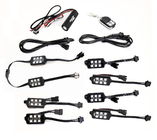 Race Sport Lighting RS08RGB-GBKR 8-Piece Light 6SMD POD RGB Multi-Color Accent Kit with Remote Control ColorADAPT Race Sport Lighting