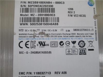 EMC 118032713 Samsung MZ3S9100XAB4-000C3 MZ-3S91000/0C3 100GB SSD FC 4GB 3.5"