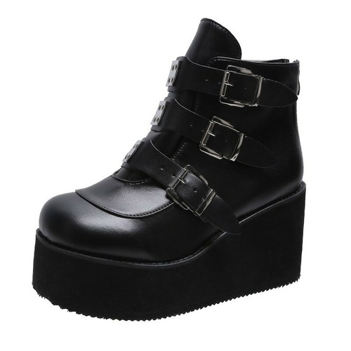 Women's Shoes Winter Ankle Boots Wedge High Heels Platform Round Toe Buckle New