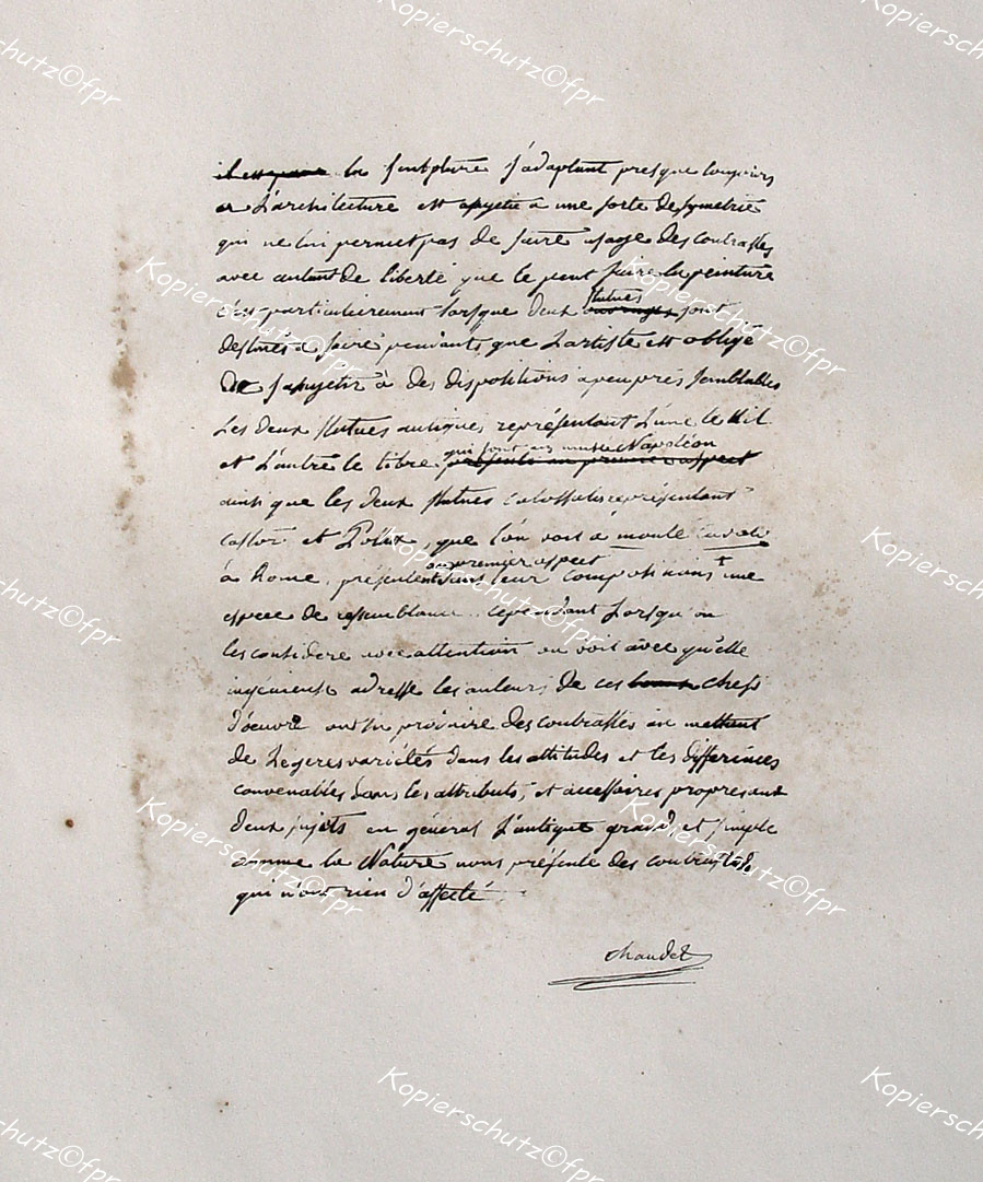 Belliard, Zephirin Felix Jean Marius (1798 in Marseille - 1861 in Paris): "Chaudet" originale Lithographie von Francois Seraphin Delpech (1778 - 1825) nach Belliard auf Bütten-Karton/hand-made paper ca.48x32cm, im Stein signiert, bezeichnet und betitelt; Rosselin Paris 1842 [Beigabe: eine Schriftprobe in Faksimile]