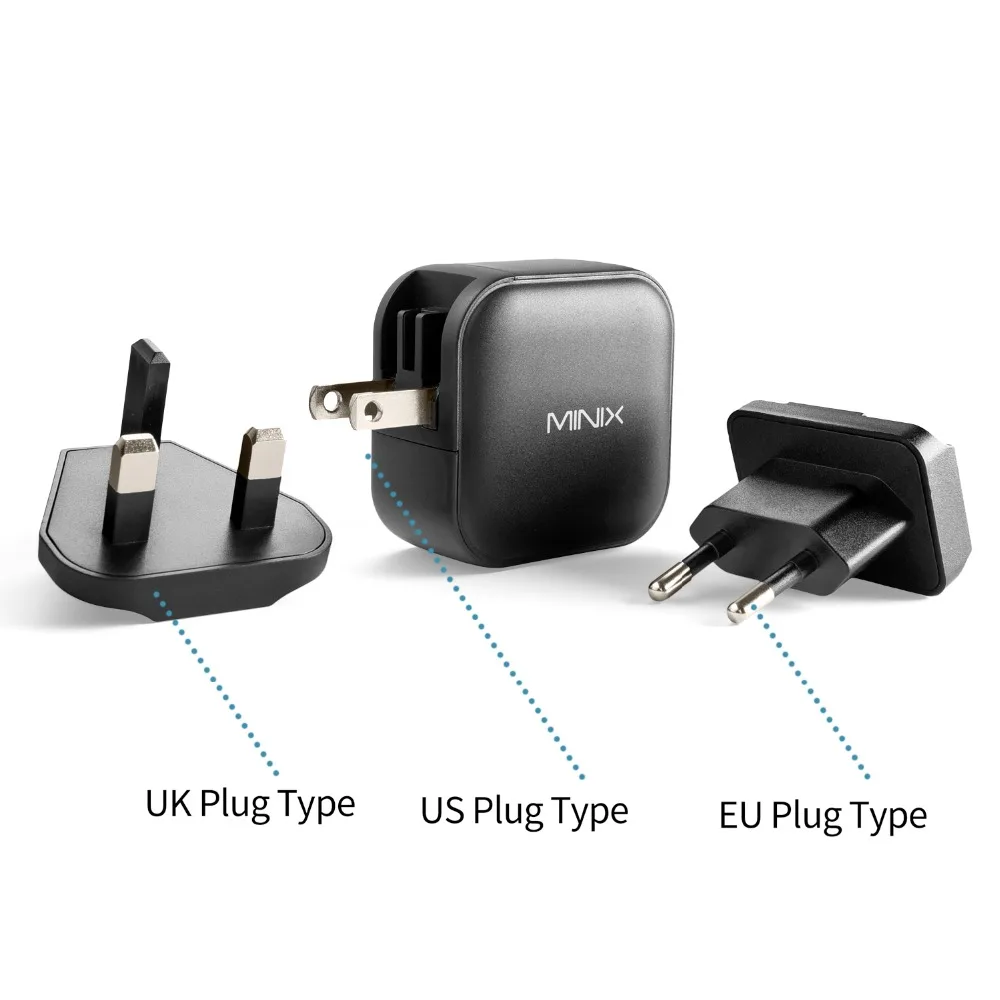 MINIX NEO P1 66W Charger GaN P1 66W Fast Charger 3 Ports 2xUSB-C 2xUSB-A Quick Charger EU/AU/UK Plug Adapter For Iphone Ipad
