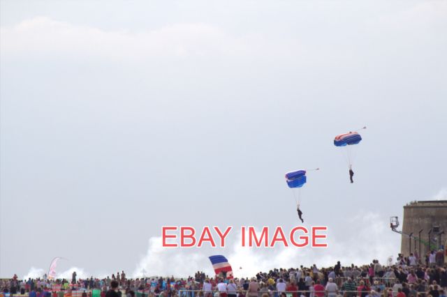 PHOTO THE RAF FALCONS PARACHUTE DISPLAY TEAM CLACTON ESSEX (3) THE RAF FALCONS PARACHUTE DISPLAY TEAM DROPPING TO THE BEACH NEAR THE MARTELLO TOWER. 2012 COPYRIGHT (Photograph and text in Extra Info) CHRISTINE MATTHEWSPHOTO PAPER THICKNESS NORMAL PHOTOGRAPH THICKNESS