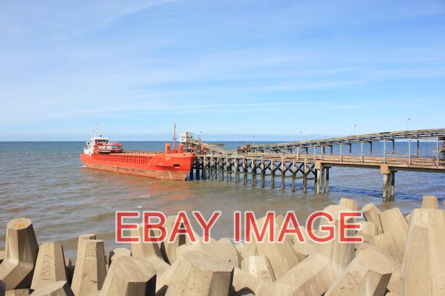 PHOTO RAYNES JETTY LLANDDULAS GENERAL CARGO VESSEL 'MERIT' TAKING ON LIMESTONE AT RAYNES JETTY.LIMESTONE FROM RAYNES QUARRY IS LOADED FROM A CONVEYOR BELT WHICH CROSSES THE A55 AND NORTH WALES COAST LINE INTO COASTAL FREIGHTERS AT RAYNES JETTY AND TRANSPORTED TO OTHER PARTS OF THE BRITISH ISLES. THE LIMESTONE IS OF A PURE FORM MAKING IT IDEAL FOR THE CHEMICAL AND CEMENT INDUSTRIES.SOURCE: HISTORYPOINTS.ORG COPYRIGHT (Photograph and text in Extra Info) JEFF BUCKPHOTO PAPER THICKNESS NORMAL PHOTOGRAPH THICKNESS