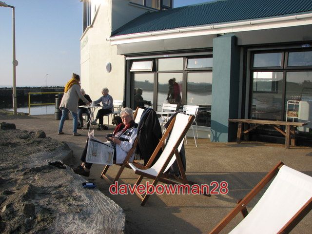 PHOTO DECK CHAIRS IN NOVEMBER PORTRUSH RELAXING WITH COFFEE AND A PAPER IN THE AFTERNOON SUNSHINE ON THE SOUTH PIER AT PORTRUSH HARBOUR. 2014 COPYRIGHT (Photograph and text in Extra Info) WILLIE DUFFINPHOTO PAPER THICKNESS NORMAL PHOTOGRAPH THICKNESS