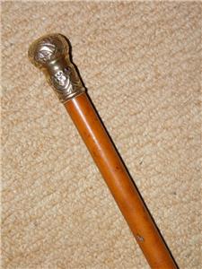 Antique Flexi Malacca Cane/Whip W/ Repousse Floral Pommel Top - 84.5cm