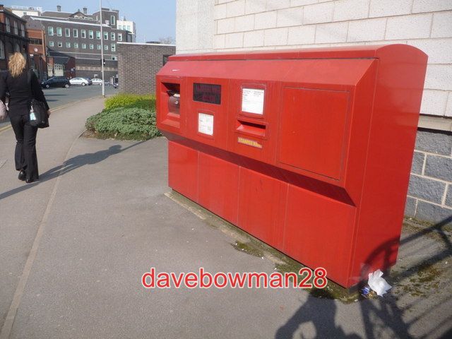 PHOTO SHEFFIELD: POSTBOX NO S1 1263 POND STREET THIS PECULIAR POSTBOX STANDS OUTSIDE THE MAIN SHEFFIELD ROYAL MAIL DELIVERY OFFICE. IT IS A SORT OF HYBRID BOX WITH FRANKED MAIL GOING IN THE LEFT-HAND OPENING (WHICH HAS A SLIDING DOOR) AND ORDINARY STAMPED MAIL IN THE RIGHT-HAND SLOT.GIVEN THAT IT IS OUTSIDE WHAT MUST BE A VERY SIGNIFICANT BUILDING POSTALLY IT IS PERHAPS SURPRISING THAT THE BOX IS NOT EMPTIED ON SATURDAYS ??? ONLY ON WEEKDAYS.THE ELECTRONIC DISPLAY WAS BLANK JUST NOW AND ONE CAN ONLY GUESS WHAT INFORMATION IT MIGHT IMPART WHEN IT IS IN USE. 2009 COPYRIGHT (Photograph and text in Extra Info) CHRIS DOWNERPHOTO PAPER THICKNESS NORMAL PHOTOGRAPH THICKNESS