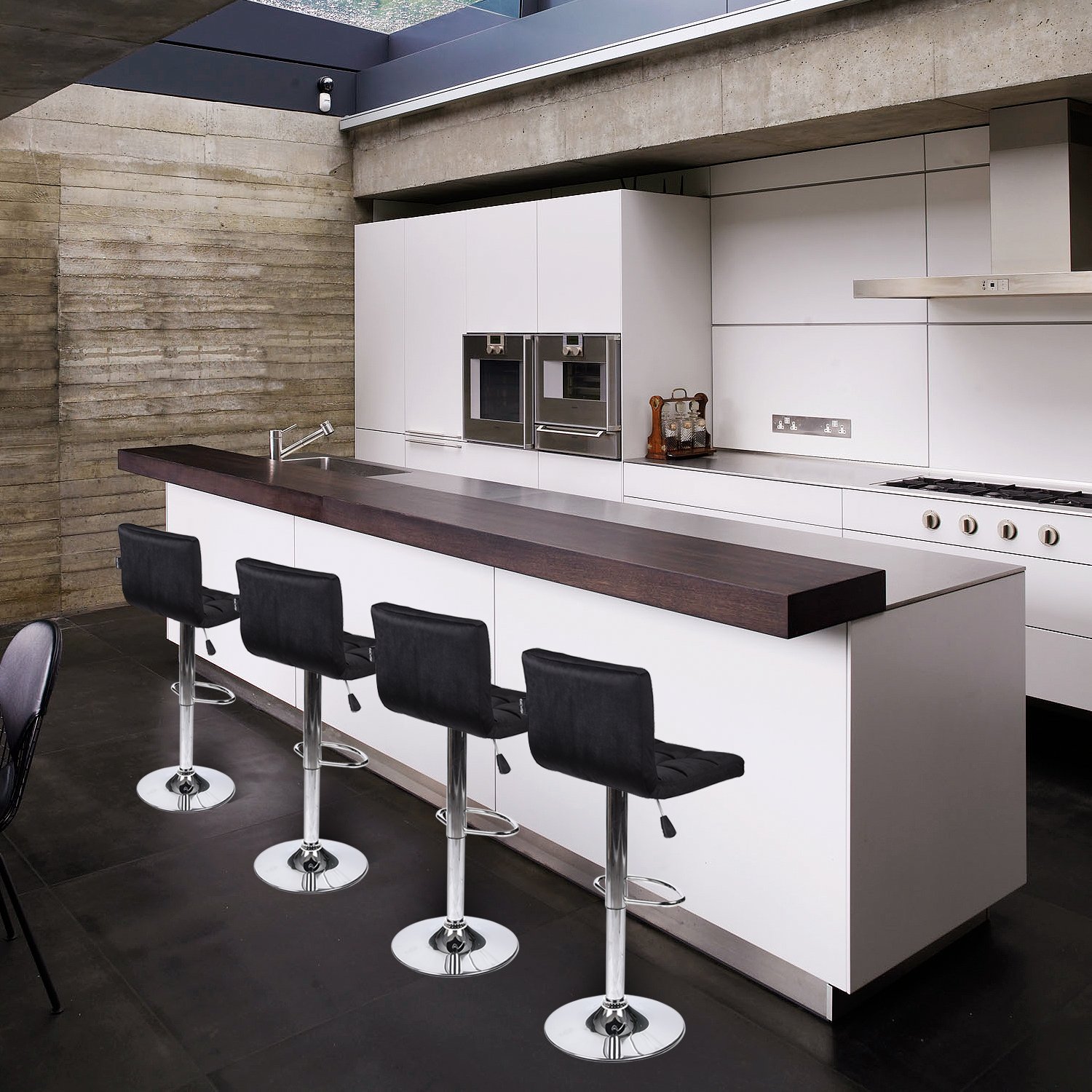 ⭐Oil and Water Proof PU leather Surface is easy to clean, Chrome steel base is sturdy for durability, Rubber ring bottom prevent floor from scratching