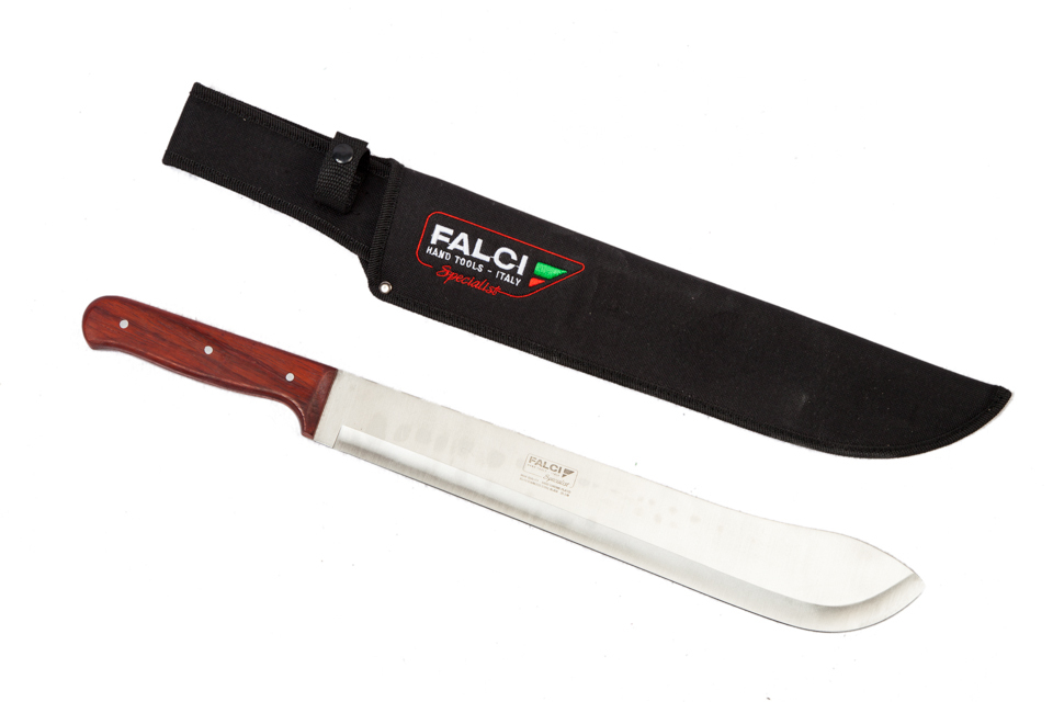 With its 36cm long blade the Falci Tools machete is perfect for chopping with its stainless steel blade. Its full tang design allows the wooden handle to securely stay in place while its contured design provides a comfortable grip during use. The machete comes with a black sheath for easy storage when not in use. The sheath features a button clip design to prevent the machete from moving when stored in the sheath. This product is not available for residents of Victoria, Australia.| SKU | 82013000 |