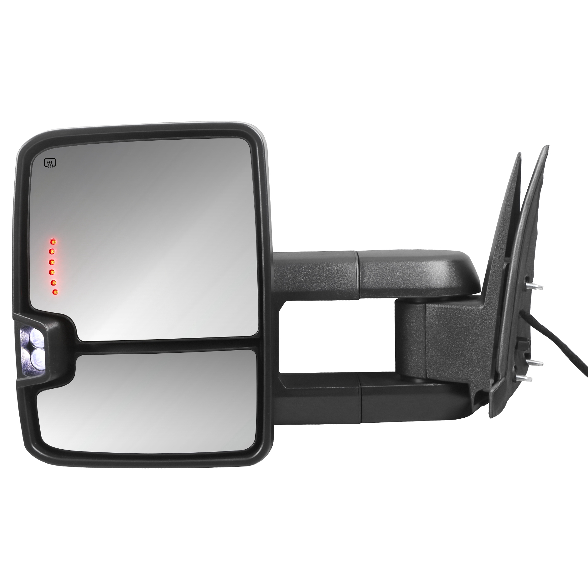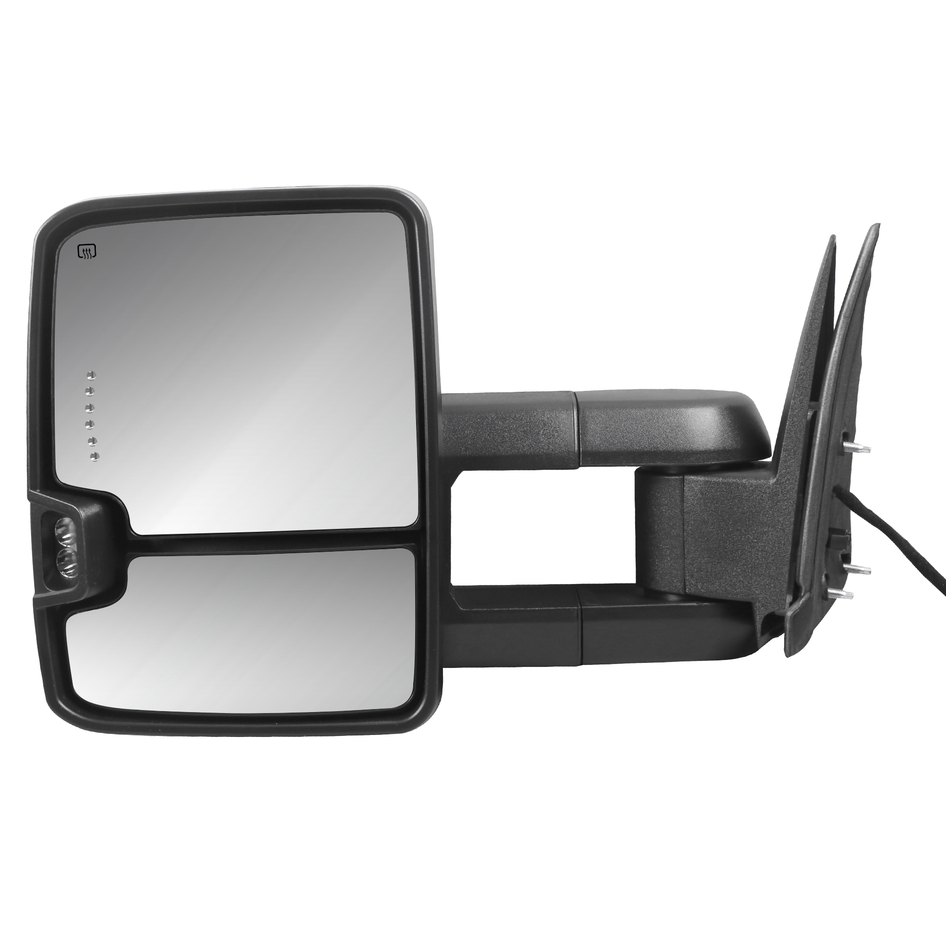 · Power operate adjusted, Heated with Yellow dynamic turn signal lights,White running Lights,manual telescoping arms,manual filp up,runing lights,clearance lights,Back up Lamp