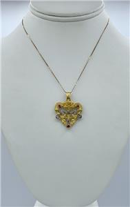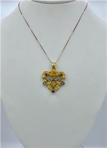 This is a stunning and rare antique Heart motif French Belle Epoque Rose Cut Diamond and Ruby 18 Karat Gold Pendant Necklace.