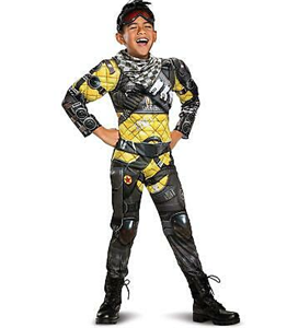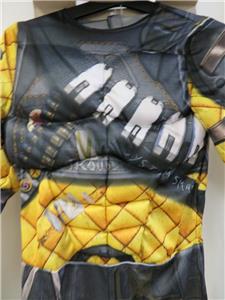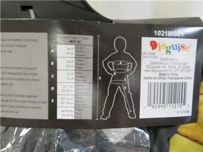 Includes jumpsuit with muscle torso and arms, neckerchief, and character goggles.