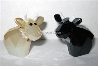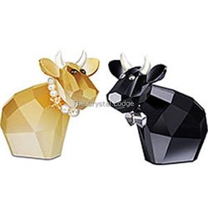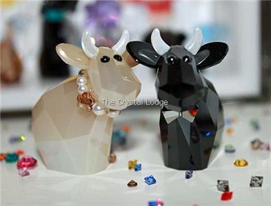 The female Mo gleams in Platinum White Desert Glow crystal with a pearl necklace highlighted with a Golden Shadow crystal bead. The male Mo shines in Jet Hematite crystal with a Chrome crystal bow tie. A truly stylish and elegant couple, they also make a great anniversary present. An exclusive release for 2010, and made in limited quantities.