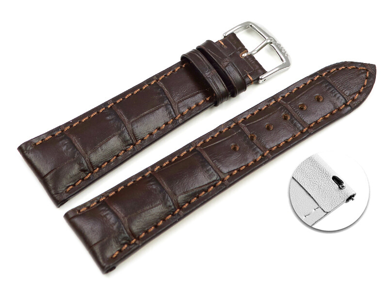 Bracelet montre à dégagement rapide en cuir de veau grain croco fait main marron