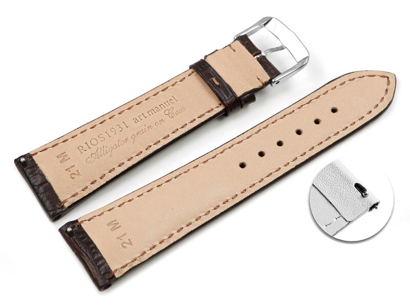 Bracelet de montre marron foncé 17mm 19mm 21mm 23mm cuir de veau de RIOS1931, petites écailles, rembourrage épais.