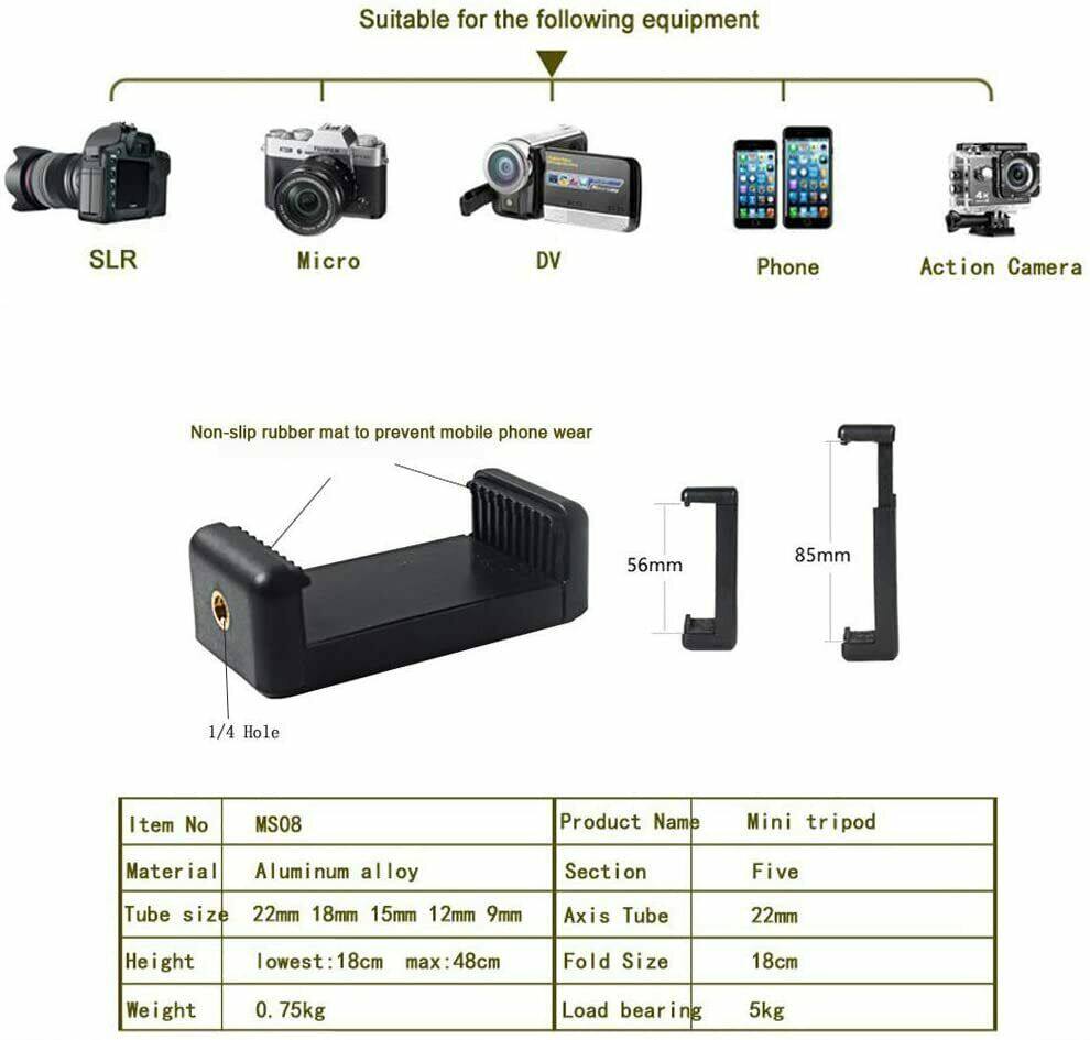 - Solid Base Support: The rubber feet prevent the mini tripod from sliding and protect delicate surfaces, which rival traditional spikes to stabilize the tripod on soft terrain