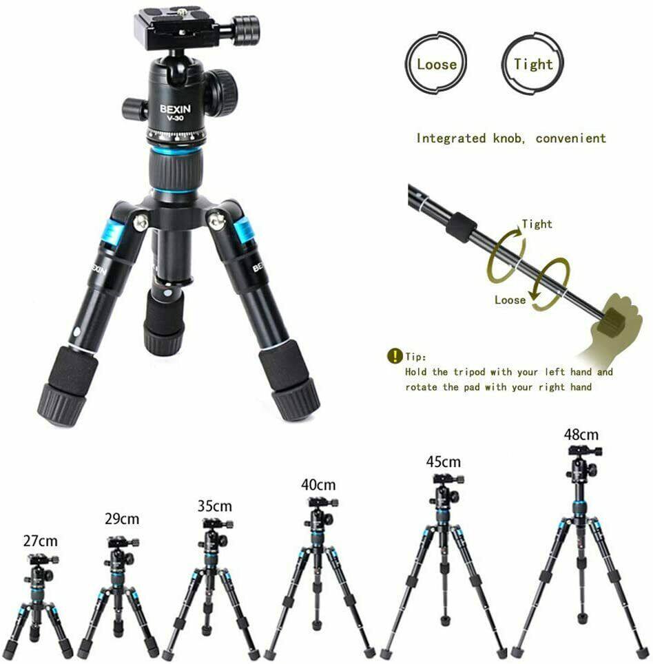 - Upgraded Design: The ball head of Bexin Mini Tripod is finely laser-engraved for tracking progressive panning, 3 position leg angle adjustment system provides flexible shooting, ideal for multi-shot panoramic photography.