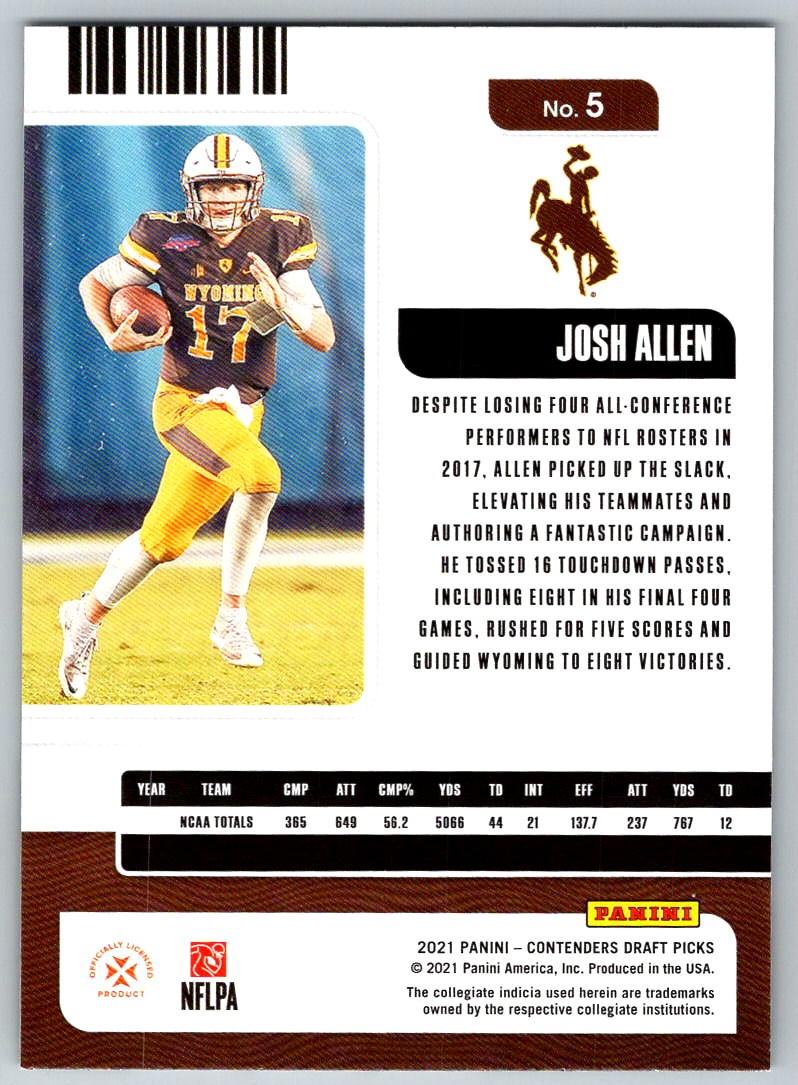 | 2021 Panini Contenders Draft Picks Game Ticket Josh Allen #5 Wyoming Cowboys |